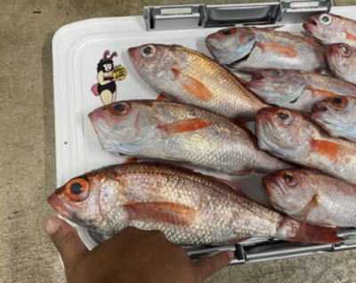 ![]() ![]() ハジメ店長にも釣れてくれました♪ありがとう!嬉し~ ![]() ![]() ![]() アカムツ初挑戦のお客様も船長からのレクチャーで《0テンション》の釣りをマスターしてバリバリアタリをとります 掛けます 釣ります 巻き上げ時のガタガタを楽しみながら、合計で4匹キャッチ (写真は10匹ですが11匹釣りました)