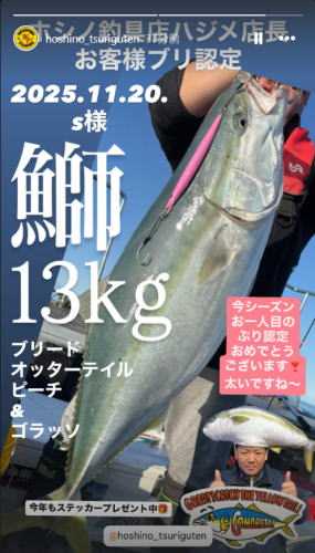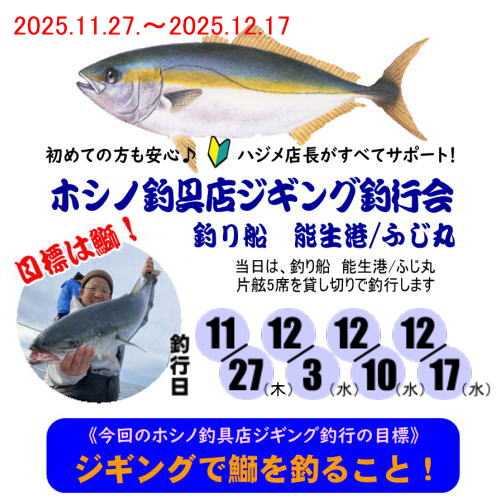 いつもご利用ありがとうございます。ホシノ釣具店ハジメ店長です。 ~~~~~~~~~~~~~~~~~~~~~~~~~ 2025.12.17 ホシノ釣具店ブリジギング釣行会