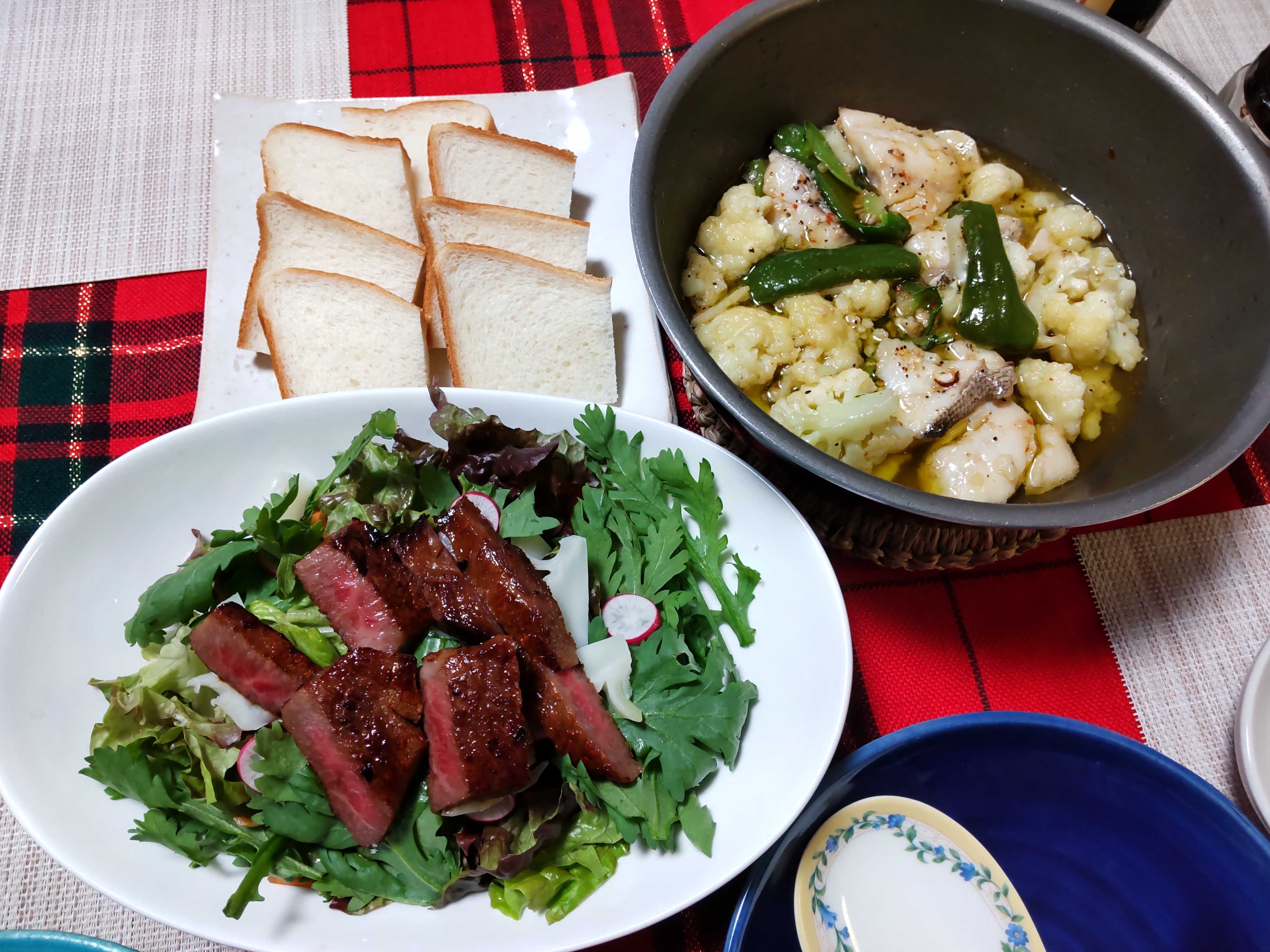 材料代1万円渡して置くので 必要なものを買ってね」って... 何日も食べ続けるのは嫌なので 今回は少しずつ数種類作ることに👍 30日に仕込んだのは~ 黒豆 数の子 菊花かぶ 柚子釜なます 田作り 松前漬け たたきごぼう 31日に仕込むのは~ お煮しめ 昆布巻き ローストビーフ きんとん 海老の塩焼き 西京焼き 卵蒸し ![]() 量が少ないものを選びました ![]() 10分で! ナッツ田作り おせち料理㉒ ![]() 作者: 星うさぎ ■材料(作り置き人分) 田作り / 40グラム A水、きび砂糖 / 各大さじ2 A醤油、みりん / 各大さじ1 ミックスナッツ / 1/2カップ ■レシピを考えた人のコメント ミックスナッツを刻んでまぶした田作り ザックリ簡単に作ります。 詳細を楽天レシピで見る→ ■1時間で..赤ワイン黒豆・おせち(1) ![]() 料理名:おせち料理黒豆 作者: 星うさぎ ■材料(作り置き人分) 黒豆 / 250g 水 / 800cc 砂糖100g+70g / 170g 塩 / 小さじ1/3 醤油 / 大さじ2.5 赤ワイン(中口) / 100cc ■レシピを考えた人のコメント 我が家定番の黒豆は圧力鍋まかせでふっくら仕上がります。 甘さ控えめがシニアに人気です(^^♪ 詳細を楽天レシピで見る→ ■作業は10分..数の子 おせち料理(17) ![]() 作者: 星うさぎ ■材料(作り置き人分) 塩カズノコ / 6本 塩ひとつまみ入れた水 / 2カップ 水 / 1カップ 酒 / 大さじ4 七福白だし / 大さじ1.5 本みりん / 大さじ1 飾り用赤唐辛子輪切り / 5個 ■レシピを考えた人のコメント 市販の味付け数の子より家族の好みに仕上げた数の子は、甘さ控えめ(^^♪ しかも...簡単に白だしで作ります。 漬け汁ごと冷凍保存2週間可能です。 詳細を楽天レシピで見る→ ■10分で..柚子釜紅白なます~おせち料理(14) ![]() 料理名:おせち料理柚子釜なます 作者: 星うさぎ ■材料(作り置き人分) 小ぶりの柚子 / 4個~ 大根 / 5センチ 人参 / 4センチ 塩 / ひとつまみ はちみつ(砂糖) / 大さじ2 酢+柚子果汁 / 大さじ3 あれば~柚子皮 / 少々 ■レシピを考えた人のコメント こぶりの花柚子を容器に使って、花型で抜いた大根と人参も飾っておせちに~ 詳細を楽天レシピで見る→ ■10分で..叩かないたたきごぼう おせち料理(3) ![]() 作者: 星うさぎ ■材料(作り置き人分) ごぼう / 1本 酢 / 大さじ2 砂糖 / 小さじ2 白だし・みりん / 各小さじ1 すりごま / 大さじ2 ■レシピを考えた人のコメント たたきごぼうなのに叩かない~ 半分に切ることで食べやすく時短。 相当手抜きなのに人気の一品なんです(^^♪ 詳細を楽天レシピで見る→ 毎晩の食卓の品数が減りました 夫の血圧が130超えるようになり 塩分摂りすぎないように考えてる夫 常備菜などを食べなくなりました これまで食べると塩分摂りすぎだからと... 使用する器の数が減りました👍 12月28日(水) 🍚ばんごはん 春菊サラダにステーキのせたら ご馳走感でたかも... ![]() 10分で! 自然薯でだんご汁風 白だしで簡単に ![]() 作者: 星うさぎ ■材料(2人分) 自然薯 / 100グラム 椎茸 / 1枚 ごぼう、人参、大根 / 各20グラム 青い葉野菜、ネギ / 各20グラム 白だし+水 / 400cc お好みですりゴマ / 小さじ1 ■レシピを考えた人のコメント 粘り気の強い自然薯はすりおろして一口大でお汁に落とすだけでモチモチお団子になります。味付けはヤマキの白だしがいい仕事してくれます 詳細を楽天レシピで見る→ 12月29日(木) 🍚ばんごはん もちもち自然薯団子汁😋 ![]() \クーポン配布中/ 送料無料 越前漆器 3段重箱 胴張 溜内朱 6寸 おしゃれ サンドイッチ おにぎり ピクニック ため 塗り 高級日本製 国産 三段 訳あり 正月 迎春 おせち 2023 福袋 初売り 【LINE限定10%クーポン 5日9:59まで】 天然竹製 7寸 三段 重箱 白木(5人〜6人用向け) 運動会 大型 弁当箱 おしゃれ 3段 お重箱 かわいい おせち 正月 花見 日本製 今年最後の不燃ごみ回収に 以前作った大皿を処分 薄く作る技術が無い頃の器は 重いんです いままで踏み切れなかったものも 今年は処分できました👍 ![]() お気に入りの記事を「いいね!」で応援しよう