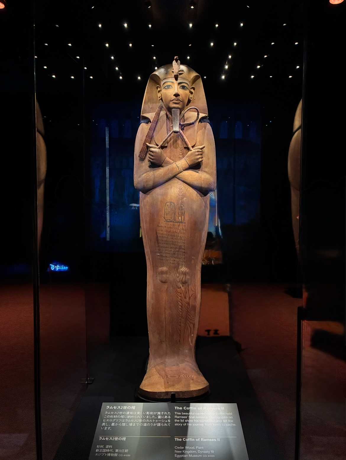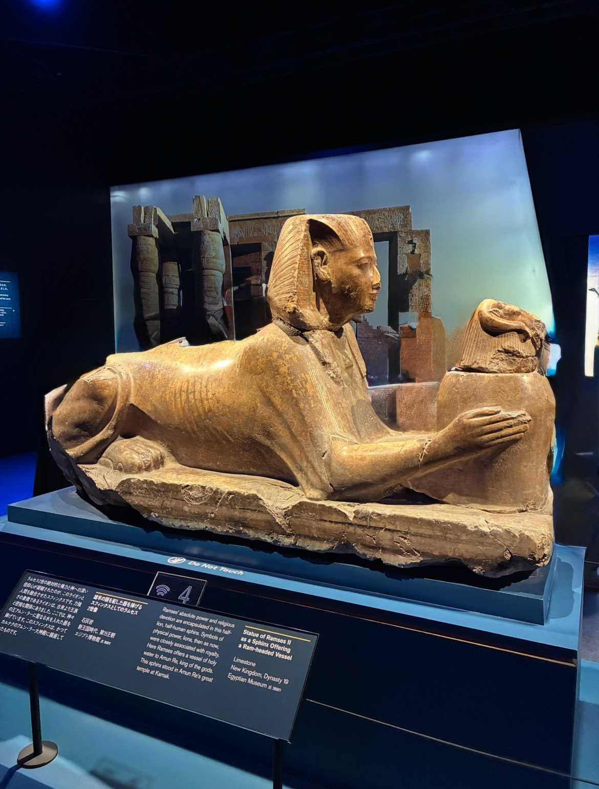 エジプトの有名な王様といえば「ツタンカーメン」だと思っていたのですが、エジプト国民に最も人気があるのがラムセス2世らしいです。 全くしらんかった… 『サンドウィッチマン&芦田愛菜の博士ちゃん』というテレビ番組を観てとても勉強になりました。 この番組を事前に観ておいて本当によかった!! ラムセス2世についての知識が深まりましたし、展示物に関する歴史的エピソードを知って、ラムセス大王展をより楽しむことができました。 ストーリーを知っておくって大事ですね。 そうでなければ、ありがたみを感じられずに素通りしてしまうところだったと思います。 アブナイアブナイ タイルかわいい… 上半身はラムセス、下半身はライオンのスフィンクス どゆこと??(答えは解説をご覧ください…) ミイラになるのにこんなに着飾るの、足の指まで…大変 盗掘を防ぐために繰り返し移動して守られてきたラムセスの棺…泣ける