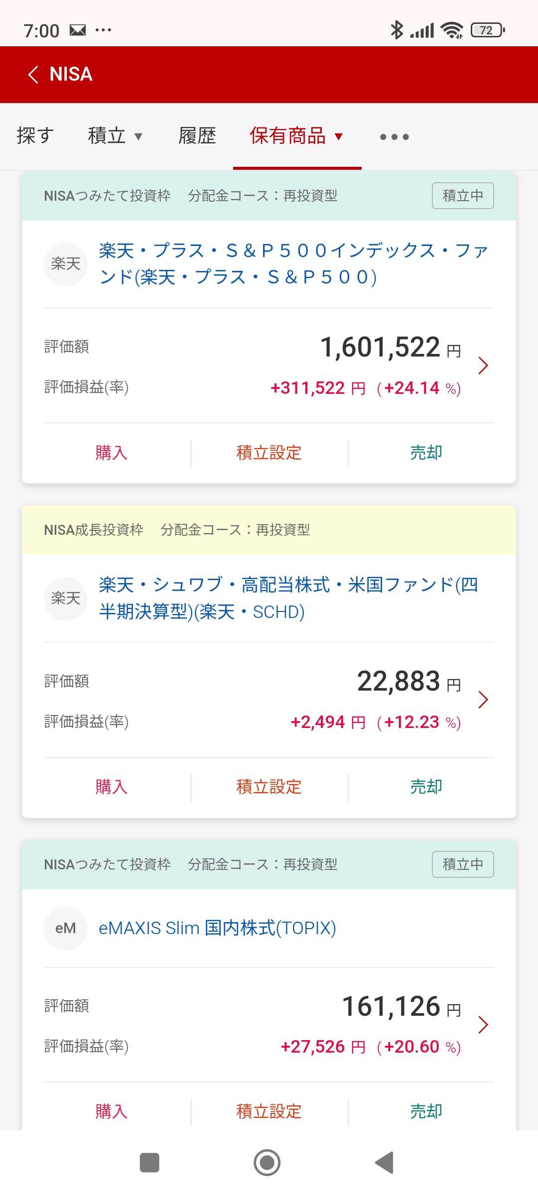 誰も始めていない。でも、そのほうが気が楽だと気付いた。 上げてるときは良くても、元本割れしたら、恨まれそう。 投資に絶対はない!絶対元本割れへん!とかないし ![]() ![]() ![]() ![]() 姪っ子甥っ子は、コツコツがんばってる。 息子は、ほったらかし投資法でちょっと心配 そもそも、うちの旦那さんは、積み立てNISAで S&P500とかオルカンとか否定派やし! アメリカ滅びたらええ&未来は衰退していく派(;゚Д゚) そうです、投資は自己責任ですv( ̄Д ̄)v イエイ にほんブログ村 にほんブログ村 お気に入りの記事を「いいね!」で応援しよう