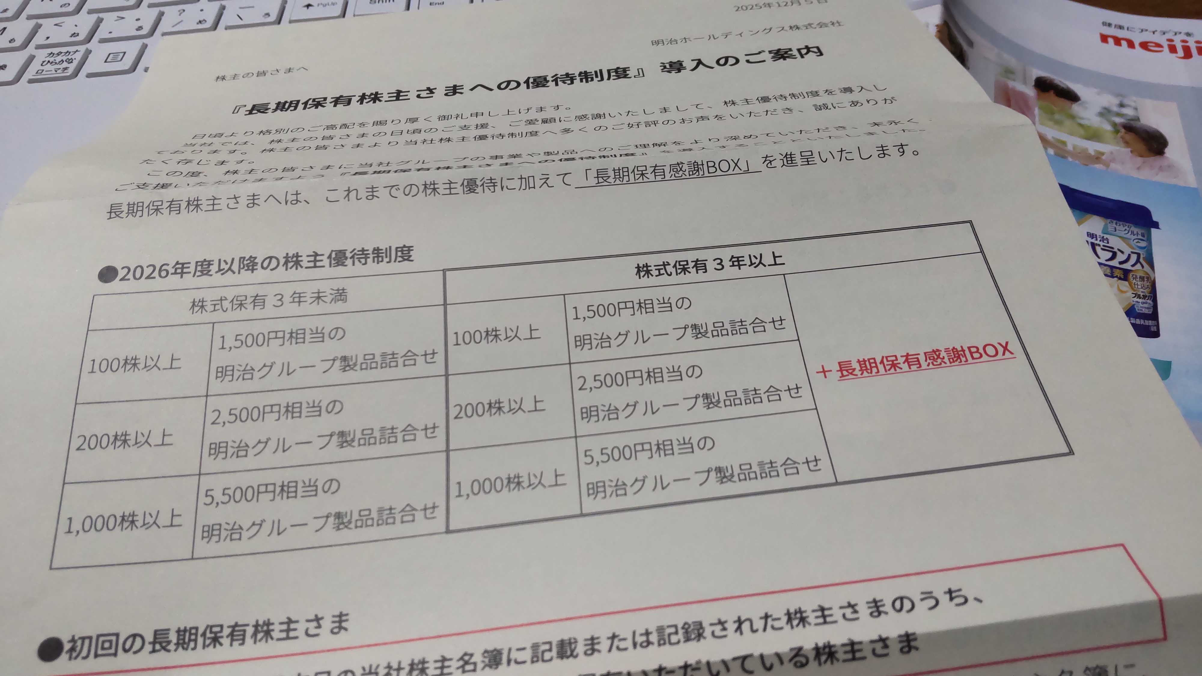 長期って、難しい💦 ![]() 寄り天ぽいな~って 思ったら、売ってしまったのだった ![]() そして、明治の優待は長期保有に変更だと思っていたが そうではなくて、3年以上保有してたら、 感謝BOX進呈だって!増えるのね!そうか! では、頑張って、3月までに100株にしようっと! さて、今日はもう見ない!手はお膝でなく 断捨離日にする!っていうか~押し入れの奥の 段ボール箱から、息子の高校の教科書が出てきた! 自分の本を入れていたと思っていたのに(;゚Д゚) 記憶があいまい!脳の衰え隠せない(´;ω;`) 右手に雑巾!左手にはゴミ袋!がんばるぞ! わてくし~~ふぁいv( ̄Д ̄)v イエイ にほんブログ村 にほんブログ村 お気に入りの記事を「いいね!」で応援しよう