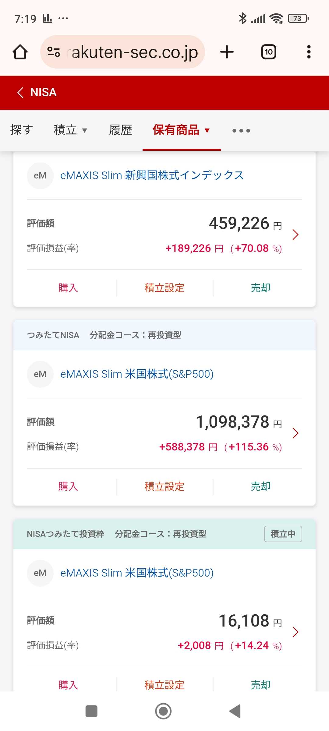 楽天プラスS&Pは月々6万円、トピックスは毎日400円 NISAでの配当金は92517円!10万には及ばずだが 来年は、12万を目標にこつこつと買っていく。 特定口座での配当金はSBIホールディングス待ち。 ![]() ![]() ![]() ![]() 昨日国債を買った。 旦那さんのNISA積み立て枠は全く使ってないので オルカンをすすめたが却下され、国債に落ち着いた。 国債って、どうやって買うねん??あ、楽天証券のサイトから こんなに簡単に買えるのか?と、旦那さん&わてくし。 シュミレーションまでしてくれるやん! 10年変動が良いのだろうが、わてくし達もうアラカンなので 5年固定、利回り1.35%にしてみた。 利回り1.35%は、インフレには負けるが、 元本割れしないなんて神やんv( ̄Д ̄)v イエイ。 10年前の0.04%の定期より、よっぽど神だわーーー! 最近、夫婦の会話で定番になっているのが 「目標金額貯まったら、ちょっと使っても良いよね?」とわてくし。 「何を言っとんのやーヽ(`Д´)ノプンプン」と旦那。 で、大爆笑なんだけど・・・・・・・・・ 旦那さんの目が笑ってない(;´༎ຶД༎ຶ`)コワイ にほんブログ村 にほんブログ村 お気に入りの記事を「いいね!」で応援しよう