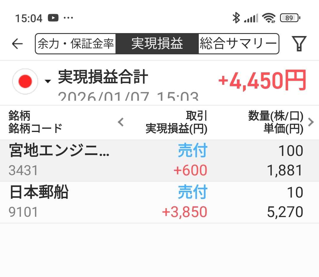 高配当だ!チャンス!とインしたが、 みるみる落ちてって、しんどかった 宮地エンジニアリング!サイナラした(;゚Д゚) 実は1株持ってる。 ![]() そして、なんだか急進した日本郵船!こわなって売っちゃった(;゚Д゚) 今日は、ダダ下がると思ってみてたが そうでもなくて、ぼーっとしてた。 することがたくさんあるのに、体が動かない💦 今日は、早く寝ることにしよう! その前に、洗濯モノ取り入れて、ご飯の用意! わてくし~~ふぁい! にほんブログ村 にほんブログ村 お気に入りの記事を「いいね!」で応援しよう