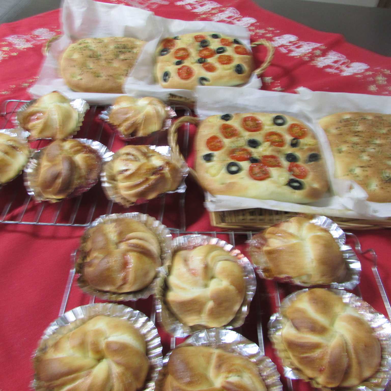 2025年も残り数時間。 年末もたくさんのパンを焼きました。 ストロベリーローズ&2種のフォカッチャ・・・ ![]() コンデンスミルク入りの生地にストロベリージャムを巻き込んで、バラの形に成型。 フォカッチャは、プチトマト&ブラックオリーブ、ハーブの2種類。 ストウブ鍋で焼くカンパーニュ2種類・・・ ![]() プレーンとドライフルーツ&くるみ入り。 高温で焼き上げるので、外はパリッと、中はふんわり。 粉の味が感じられる美味しいカンパーニュ ピザモンキーブレッド・・・ ![]() いつものピザをモンキーブレッド風に。 ピザソースを絡めて焼いているので、どこを食べても美味しい!! オリーブのバゲット・・・ ![]() オリーブ&カマンベール入りのバゲット。 そのままでも、ワインと一緒でも美味しい~ あおさ香るベーコンバゲット・・・ ![]() 生地にあおさをたっぷり混ぜ込んで。 仕上げにクープが大きく開いて美味しそう~ 米粉のべジフーガス・・・ ![]() 米粉入りの生地に、野菜をたくさんのせて。 見た目もばっちりのフーガス。 ポテトミートブレッド・・・ ![]() トマトソース味のミートと、マッシュポテトを重ねて、包んだミートパイのようなパン。 1個でボリューム満点。 今年もたくさんのパンを焼きました。 ブログも読んでいただきありがとうございました。 来年もよろしくお願いいたします。 良いお年を~(^_-)-☆ お気に入りの記事を「いいね!」で応援しよう