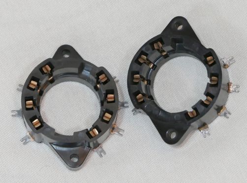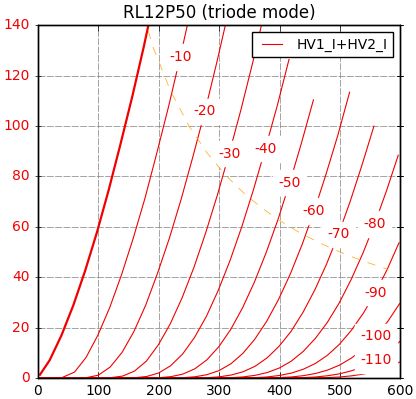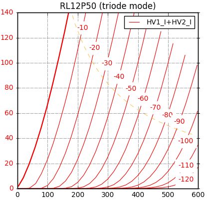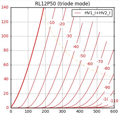 RL12P50という真空管です。 普通の欧州型サイドコンタクトとはまた違った特殊な脚ですので、それ専用ソケットが必要です。 ちょっと不便ですね。 規格は真空管(Electron tube) 規格表データベースの12RLP50の規格表を参照願います。 ヒーターは12.6V0.65Aです。(6.3Vで換算すると1.2Aですから、そこそこです) 規格表ではプレート損失40Wと書かれていますが、あくまでC級動作の送信管としてなので、 見た目の感じから807クラスの25Wと仮定しました。 2つとも管面に29/44/4の印字と裏側にはWahrmacht 3844,BAL1964の印字。 44年製あるいは1964年製造の保守品でしょうか...。 いや、1964年製にしては古くさい感じですよね。(笑) Wehrmachtと書かれているので戦中のもののようにも見えます。 規格表の絵(真空管を下から見た図)の左側モールドの出っ張りから右回りで [モールドの出っ張り] ・NC(センターピンと接続) ・サプレッサーグリッド ・スクリーングリッド ・NC ・コントロールグリッド ・ヒーター ・カソード ・ヒーター 〇トップ左:プレート 〇トップ右:サプレッサーグリッド ・センターピンは5番目のNCピンと繋がっている etracerで測定してみましょう。 1本目(管面に29/44/4、ベースに810544と印字されている) Ep=280VでEg1=-30Vのとき、 Ip(+Ig2)=55.93mA Ig2=2.04mA rp=1370Ω gm=4058μS μ=5.6V/V 2本目(管面に29/44/4、ベースに81162と印字されている) Ep=280VでEg1=-30Vのとき、 Ip(+Ig2)=54.04mA Ig2=2.02mA rp=1452Ω gm=3856μS μ=5.6V/V どちらも悪くない感じですね。 参考まで2本目の球でG3をG2と一緒にした変則的な三結を試してみます。 Ep=280VでEg1=-3V(通常の三結に合わせました)のとき、 Ip(+Ig2+Ig3)=55.84mA Ig2+Ig3=9.69mA rp=1307Ω gm=3839μS μ=5.0V/V G3が効いてますね。 rpが150Ωほど低くなりました。 カーブも綺麗です。 三結はパワーが少なくなりますが、 前も書いたように95dB近い能率の励磁型スピーカーを愛用しているので、1Wもあれば不自由は感じません。 私は静かに音楽を聴くタイプですし。 今回の測定から、RL12P50はオーディオ用途として十分使えることがわかりました。 G2-G3接続の三結でも-35V程度のバイアスでいけます。 5kΩのトランスで軽く受けてあげるのが良いかと思います。 お気に入りの記事を「いいね!」で応援しよう