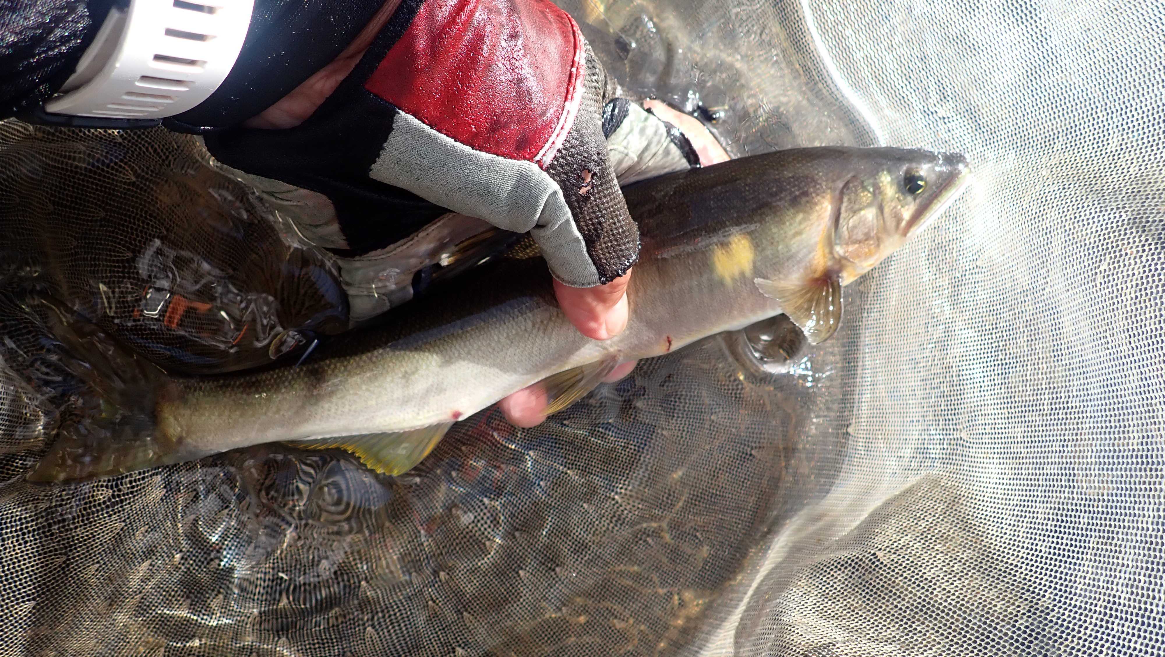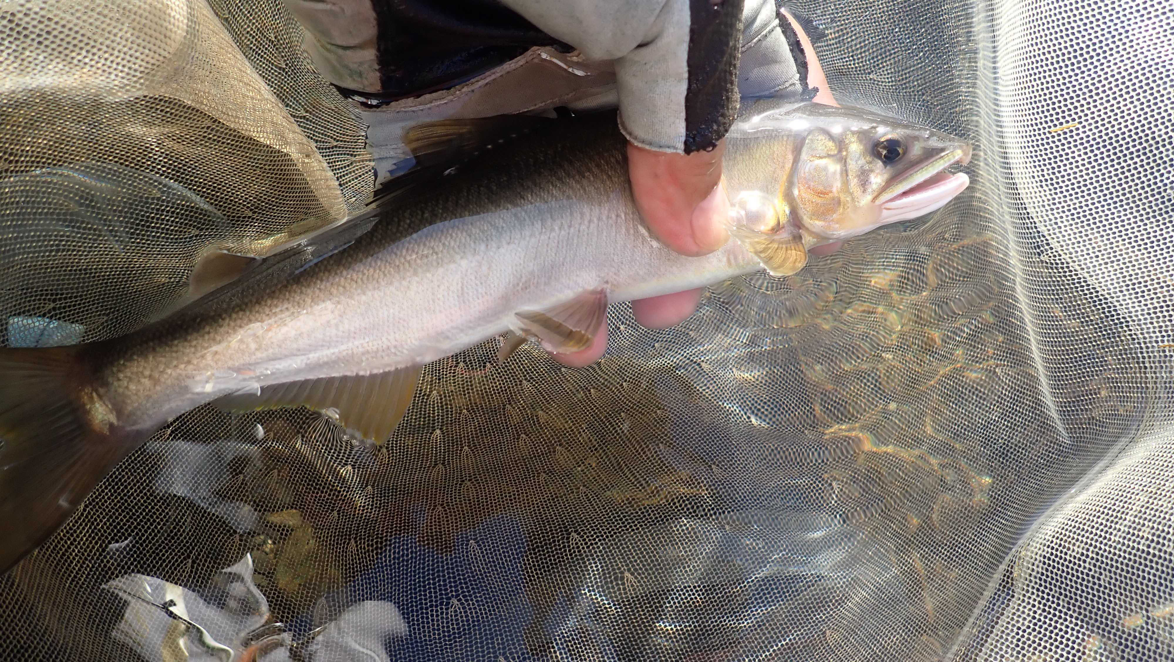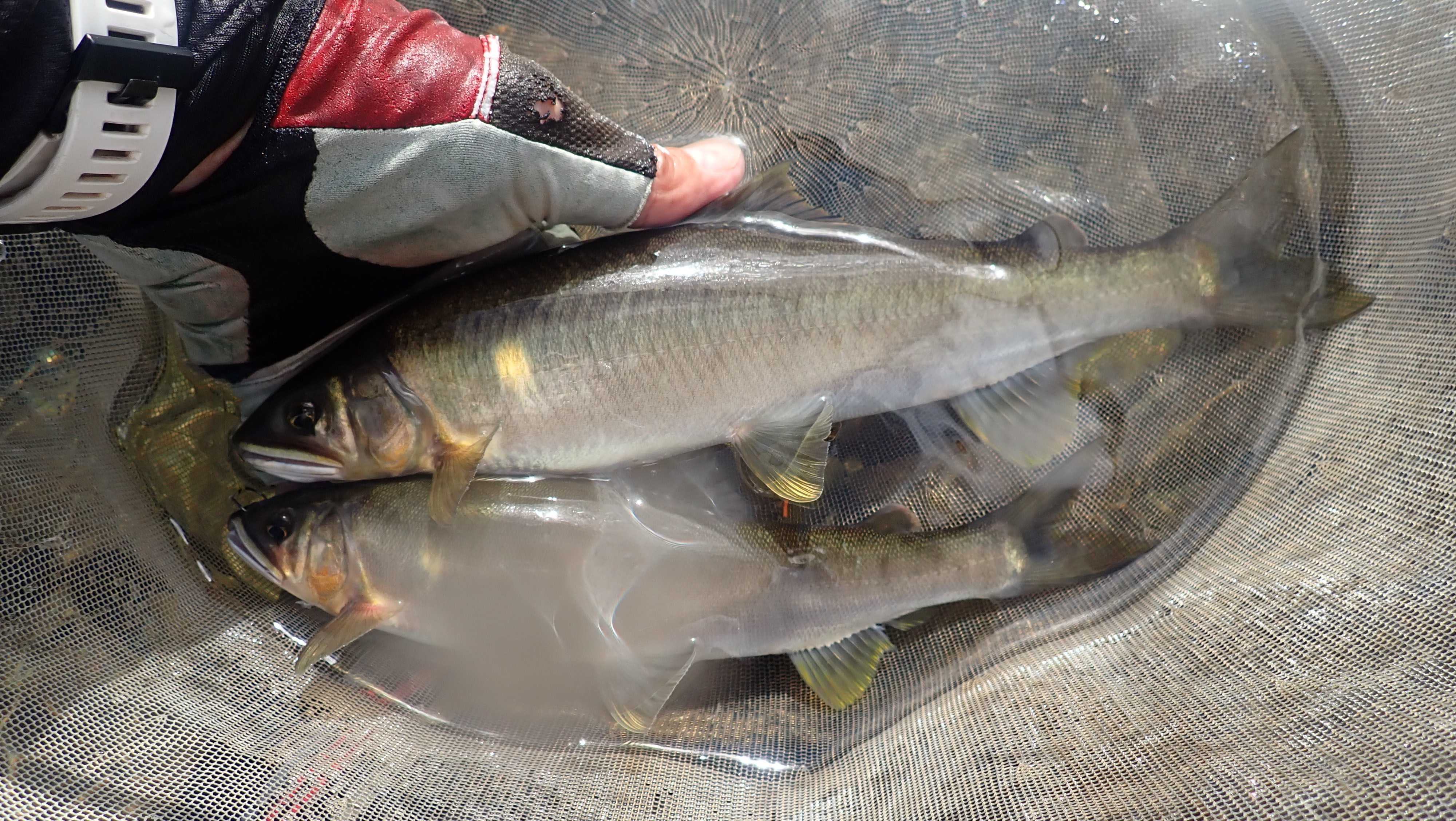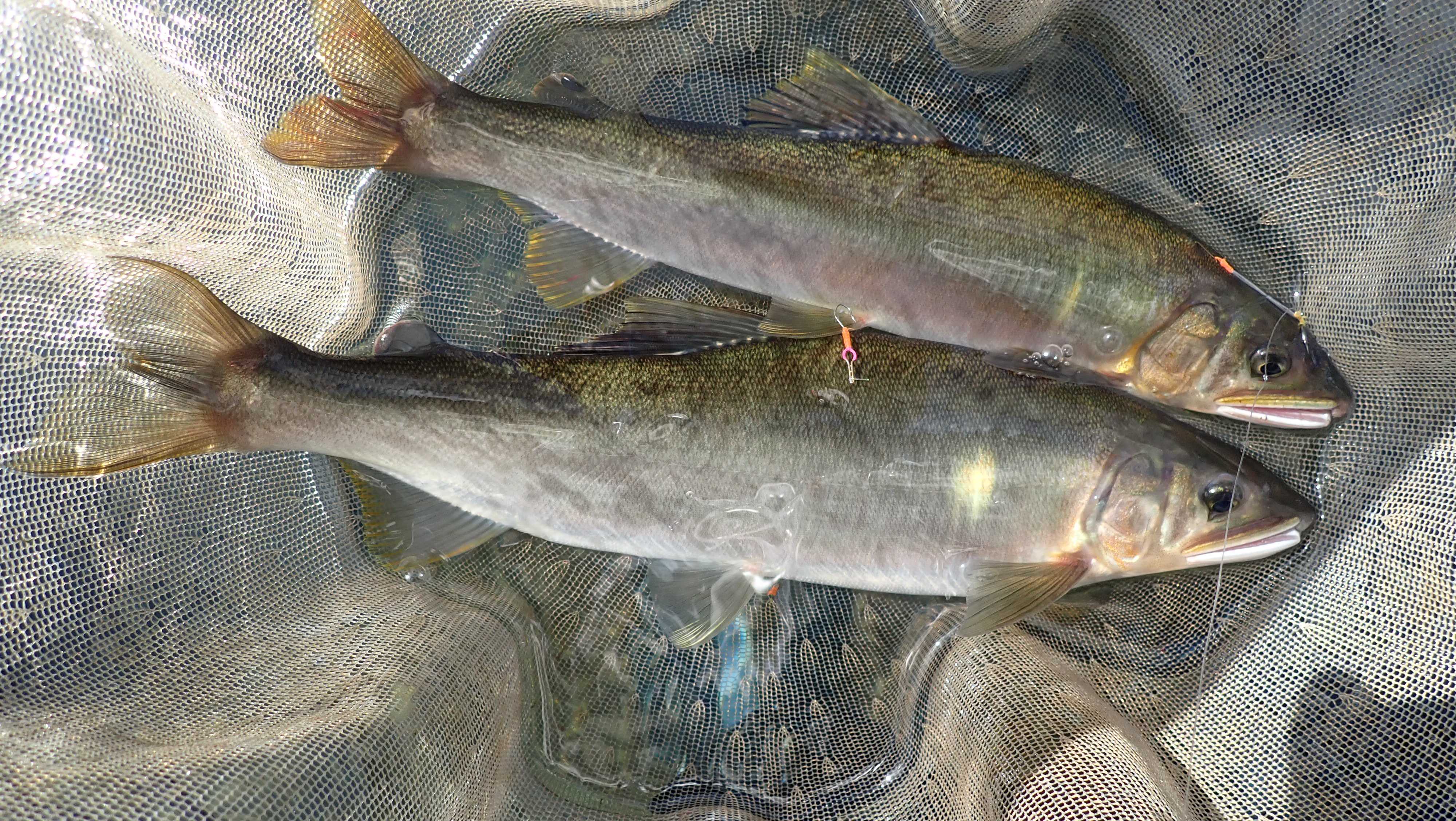 ![]() 2025.10.7(火)高知県・四万十川 満月の夜。 深夜、南海フェリーで徳島上陸。 徳島自動車道が夜間工事のため、土成まで通行止め。 下道で迷うが、何とか辿り着く。 ![]() 高知県・四万十川へ。 水少ないわ ![]() 中半家沈下橋へ。 前回の水位の半分 ![]() 不安と期待が半々でやってみます。 左岸で1名いるが、右岸はおいやんのみ。 貸し切り ![]() 1投目、瀬肩。 すぐ掛かり順調なスタート ![]() ほんですぐ波立ちへ入れると。 2匹目 ![]() 大体26cm前後クラスが多い。 細長い四万十川スタイルです。 ![]() 凸凹で足元悪く掛ると難儀します。 上流へ釣り歩き、拾い釣り。 思った場所で掛かります。 ![]() お昼まで11匹でした。 ![]() お昼から「道の駅とおわ」左岸からやってみます。 ![]() 水が少なく、思っていた場所は掛かりそうに無い ![]() 深いトロ場。 大物はいるか ![]() 上から人間が降ってきた ![]() 突然、ガガガーン イトが岩盤に擦れて上流へ走る ![]() これは・・尺あるかな ![]() ・・残念29.5cmでした。 寝ないで走って来たので体力保存。 15時終了。 本日の釣果 おいやん 朝11匹 昼2匹 計13匹 アユ釣りマガジン 和歌山鮎情報はこちら お気に入りの記事を「いいね!」で応援しよう