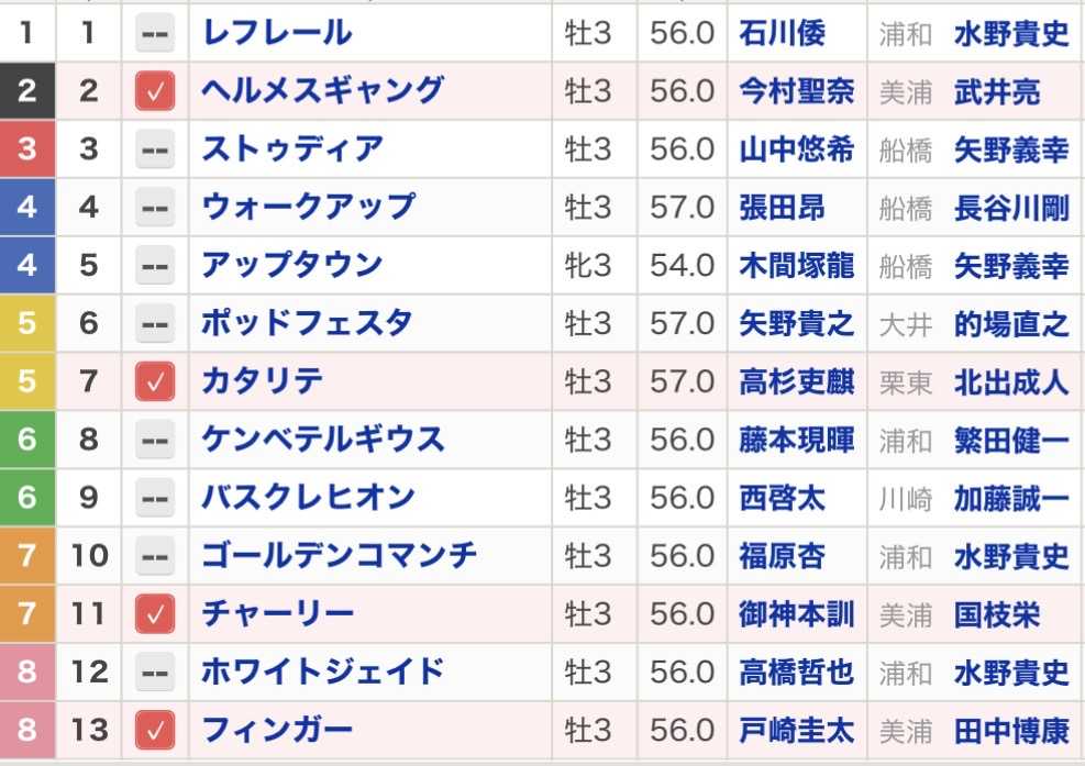 2026船橋競馬場第52回再開からは3回目ブルーバードカップ Jpn3NAR公式チャンネル優勝13・フィンガー 戸崎圭太7・カタリテ 高杉吏驥11・チャーリー 御神本訓史1-3-2番人気カタリテ距離は持つのが証明された勝ち馬よりさきに動いた結果が今回内に居たんだし戸崎が来てから追っても間に合ったし結果も変わっていたかも知れないくらいでしょうしねちなみに騎手のコメントが「思ったより距離をこなしてくれた…」こなせるって思った騎乗をしないと勝てない「勝ち馬にマークされた」道中はしょうがないが先に動いて負けたような物この騎手の継続だと勝てる物も勝てなくなりそう…馬券は馬単馬単で良かった♫v(^_^)v1/22兵庫競馬が姫路競馬場で兵庫クイーンセレクション 重賞の開催元JRA騎手小牧太騎手が弟の小牧毅厩舎の馬に乗る兄弟重賞制覇に期待してチョット購入を検討中船橋競馬場でも報知グランプリカップ 重賞