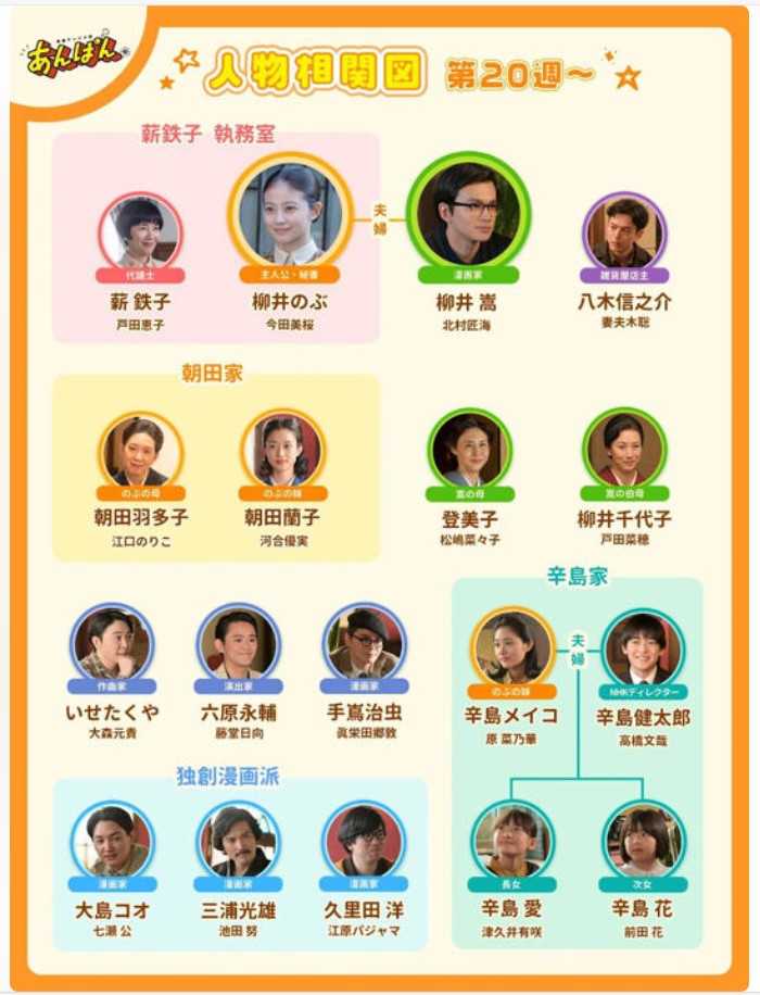 <あんぱん:最新の人物相関図公開、9人いた朝田家はいまや 新キャラ登場も予告! マンガ家3人増>
