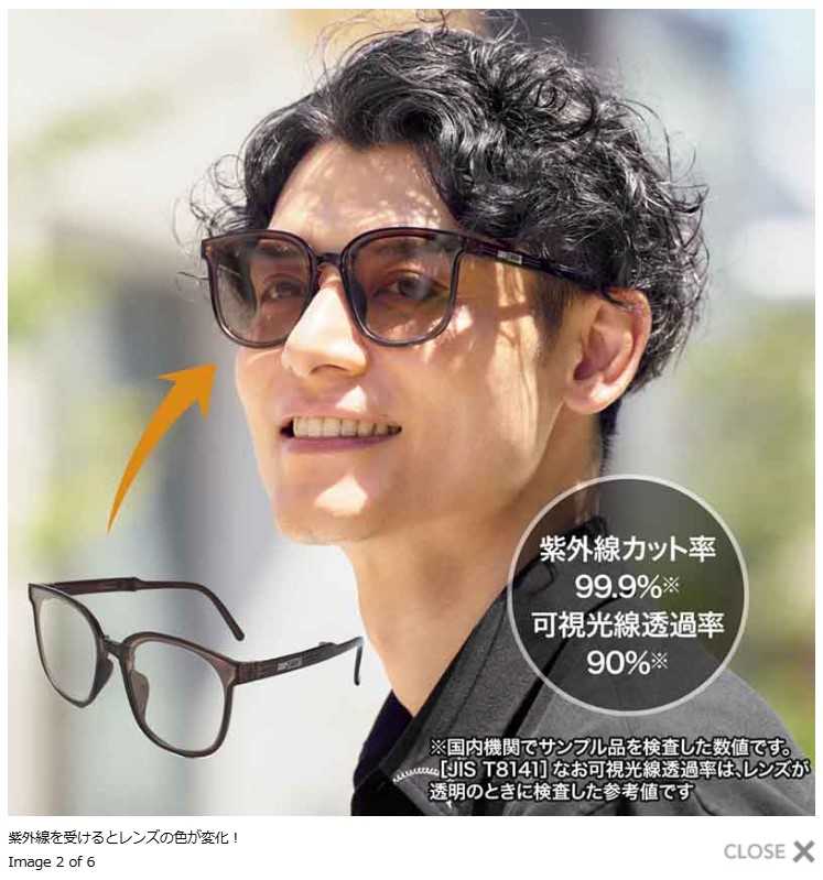 (*国内機関でサンプル品を検査した数値です。[JIS T8141]なお、可視光線透過率は、レンズが透明のときに検査した参考値です)