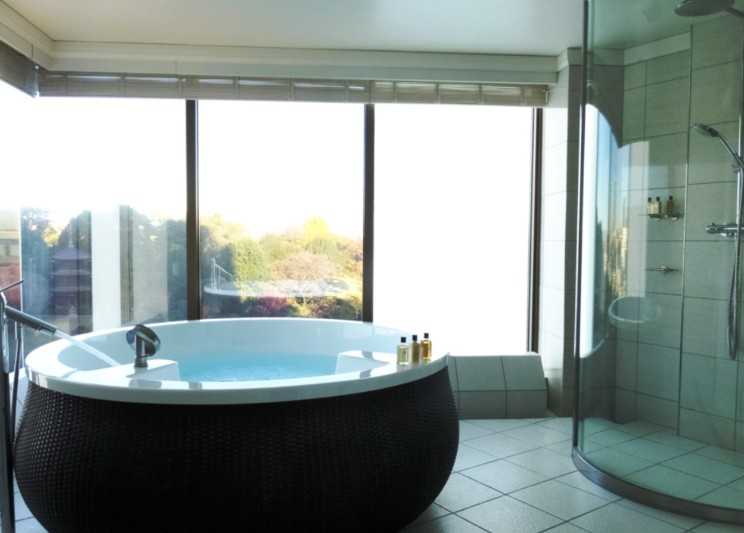 100回記念のアップグレードで風呂から庭園の三重塔が見える「ビューバス・スイート」、