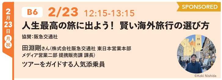 南野陽子さんの次は阪急交通社の「人生最高の旅に出よう!賢い海外旅行の選び方」です。