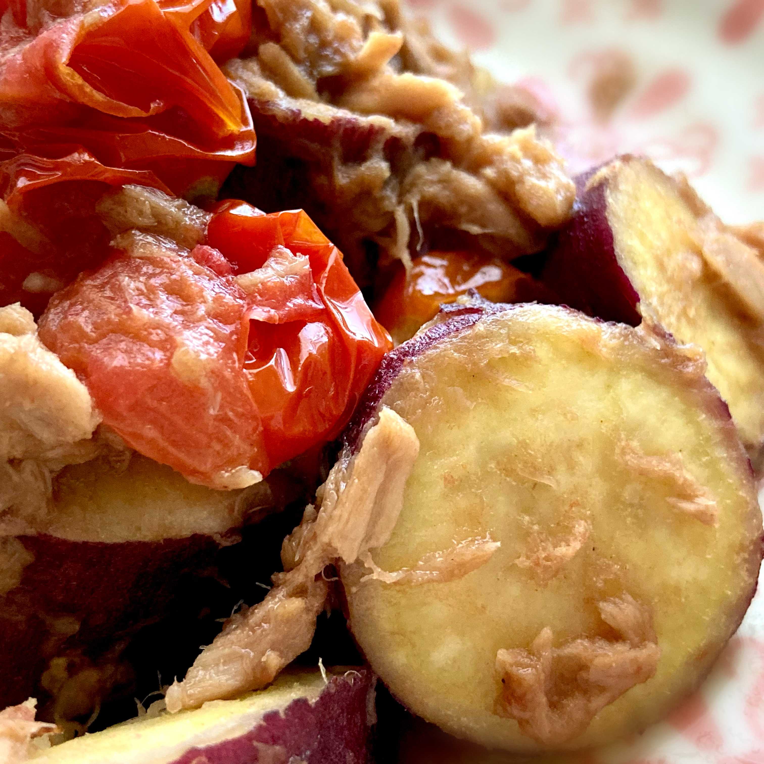 こんにちも お芋好きが高じ、『暮らしの中にさつまいも』をコンセプトに、 全国のさつまいもの魅力を発信する活動をしています。 あの人は、さつまいものどんな食べ方が好きなのだろう。 そんなことが気になって、出会った方につい聞いてしまうことがあります。 それは私にとって、“味わイモな旅”のひとつだったりします。 “味わイモな旅”は、“味わい”と“さつまいも”と“旅”を掛け合わせてみた、 さつまいもの味覚旅の総称です。 食べること、調理すること、誰かに話を聞くこと、土地を訪れることなど、さつまいもに関連することはすべて、味わイモな旅をしている気持ちになります こうして記事を書くこともその一つであるように思います。 そういった色々な場面を“旅”とあらわすのですが、 旅先は、自ら発見することもあれば、誰かから教えてもらうこともあり、 楽しみや感動が生まれ、広がり、そして続いていくように感じています。 今回は、味わイモな旅で、静岡県の生産者、セリザワマルシェの芹澤直己(せりざわ なおき)さんに教えていただいた、オススメ料理『さつまいもとシーチキンの甘辛煮』をご紹介しちゃいも~す 富士山の麓、静岡県・御殿場市にあるセリザワマルシェ。 300年代々とつづく農家さんで、バラやミニトマト、パプリカやさつまいも等の生産をされています。 自分たちが栽培したさつまいもを焼き芋にし、“セリザワマルシェ直売所”で販売するまでを一貫して行われています。 富士山の麓にひろがる火山灰土壌は、排水がよく、さつまいもづくりにぴったり。 栽培の肥料にもこだわったお芋は、収穫後に貯蔵して熟成させ、甘みをしっかりと引き出したものを焼き芋にされています。 ![]() ▲“セリザワマルシェ直売所”の焼き芋(品種:紅はるか)。 一袋1~2本入り。重さ売り300~500円で数量限定で販売中。 皮に近い果肉はもっちりしっとりと、中がわは、まるで天然のカスタードクリームみたいにとろりとしていて、濃厚な甘みに仕上がっています。 「うちの焼き芋は、コンベクションオーブンを使って低温でじっくりと焼きます。 老若男女幅広い方に楽しんで食べていただける印象があるので、オリジナルの焼き芋を通じて、美味しさや元気を届け、地域を更に盛り上げていけたら嬉しいですね。 地元の方やここを訪れてくださる方に味わっていただける機会を増やしていきたいです。」(芹澤さん) ![]() ▲ご自身の焼き芋を味わう芹澤直己さん。 さつまいもの形が可愛くて、ついつい見とれてしまうこともあるようです そして今回、セリザワマルシェの芹澤さんに、 オススメのさつまいも料理を伺ってみました その名も『さつまいもとシーチキンでつくる甘辛煮』 芹澤さんは、奥様がつくられるこのお料理がお気に入りで、 食卓に並ぶと「無限に手が伸びてしまいそうになる!」のだそうです。 トマトを加えると更に美味しいとのことで、 今回はトマト入りでつくってみました。 ![]() ▲『さつまいもとシーチキンでつくる甘辛煮』(Instagram:@imorin113) 【作り方メモ】 用意するもの▼ ・さつまいも ・シーチキン ・ミニトマト A ・顆粒だし ・みりん ・酒 ・醤油 手順▼ 1)さつまいもとミニトマトを好きな大きさ、形に切る。 2)さつまいもはアク抜きで10分ほど水につける。 3)さつまいもを耐熱皿に入れラップをかけ、電子レンジ(950w)で2分程加熱する。 ※レンジのW数によって異ななります。竹串等がすっと通るくらいを目安に加熱しておくとよいです。 4)フライパンに3)とシーチキン、ミニトマト、Aの材料をすべて入れて火にかけ混ぜ合わせる。 5)トマトがしんなりしてきたら火を止め、お皿に盛り付けたら完成 ![]() お芋の甘みが、トマトの程よい酸味やコクを感じる甘辛な味付けとマッチし、食欲をそそります。 ごはんのお供にも! この冬、食卓の一品にいかがでしょうか。 セリザワマルシェさんの焼き芋が買える直売所は、 セブンイレブン御殿場ぐみ沢店の横にあります。 今期の焼き芋販売期間は、なくなり次第終了とのこと 最新の情報は、セリザワマルシェさんのInstagram (https://www.instagram.com/serizawamarche/)に掲載されています ![]() ![]() 店頭は、なんと基本無人販売 芹澤さんの農園で収穫されたお野菜がメインとなります。 季節によってラインナップが変わるそうで、 基本はミニトマト、 夏秋は茄子・オクラ・パプリカ・玉ねぎ、 冬春はブロッコリー・プチヴェール・里芋などが並ぶということです。 そして冬場は、焼き芋(品種:紅はるか)も焼き芋は、テイクアウト専用で袋に入って用意されています ![]() ▲代金を入れる木箱。買うものが決まったら、ここにお金を入れていきます ![]() ▲メッセージが書かれたホワイトボードが迎えてくれます。 時には息子さんが描かれたイラストも! ![]() 富士山の麓・御殿場市から発信する、焼き芋販売の新たなかたち。 セリザワマルシェさんの挑戦は続きます ほっこり ほくほく さつまいも【芋キュンスポット♪詳細】 店舗名