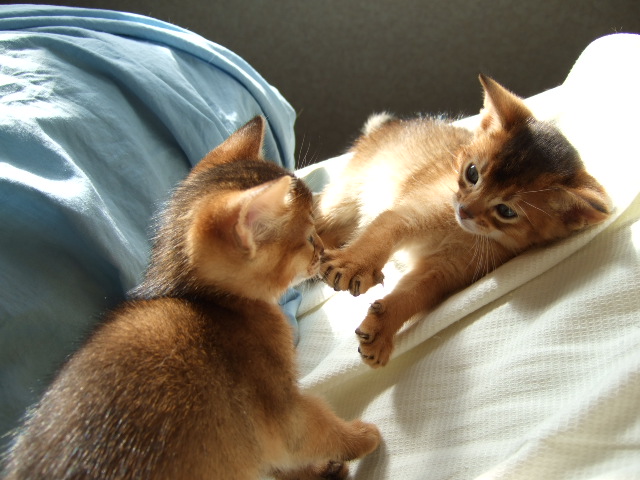 うひょ!美人がいっぱい!!ちょびっとはずっかいにゃ~!!-ベンケイ君今日はお友達のERIさん、Minaさん,たいさんが遊びにきてくれました!!!ちびた~ずはみんな大興奮!!やった~!!今日は動くおもちゃ(人間)がいっぱいにゃ~!!どれで遊んでもらおうかニャ?-ビビちゃんわたちはいくわ!!-ベルちゃん迷ってる暇なんてないわよ~!!-ベルちゃんたっ、たくさんの猫じゃらしの攻撃ニャ~!!!これ!いただきっ!!-ベンケイ今日、ベンケイ君はブルーの猫じゃらしが好きな事が判明しました!!ついでにカメラも攻撃?しちゃおうっと!-ビビちゃんじゃ、ボクはこっちを攻撃しちゃおう!!-ベンケイ君私はここでゆっくり観賞するわ!-クラウママボクは乱入してみたけど・・・・-インディーパパちびた~ずはそれどころじゃないらしい。わたち、2代目る-ちゃん候補です!ERIさんにるーちゃんそっくり!!と言われました!!るーちゃんは「チャルくん&ルーちゃん&ダークくん日記 」で、見れますよ~!!ブログランキングをポチッと押して、上位を見るとありま~す!ちなみに Minaさんは「Mina*s Web Diary」 たいさんは「猫魂 - Nekodama -」です!よろしくです!****ブログランキングに参加しています****!!ポチッと、よろしくです!!