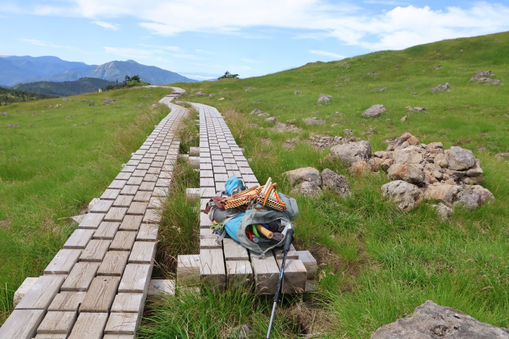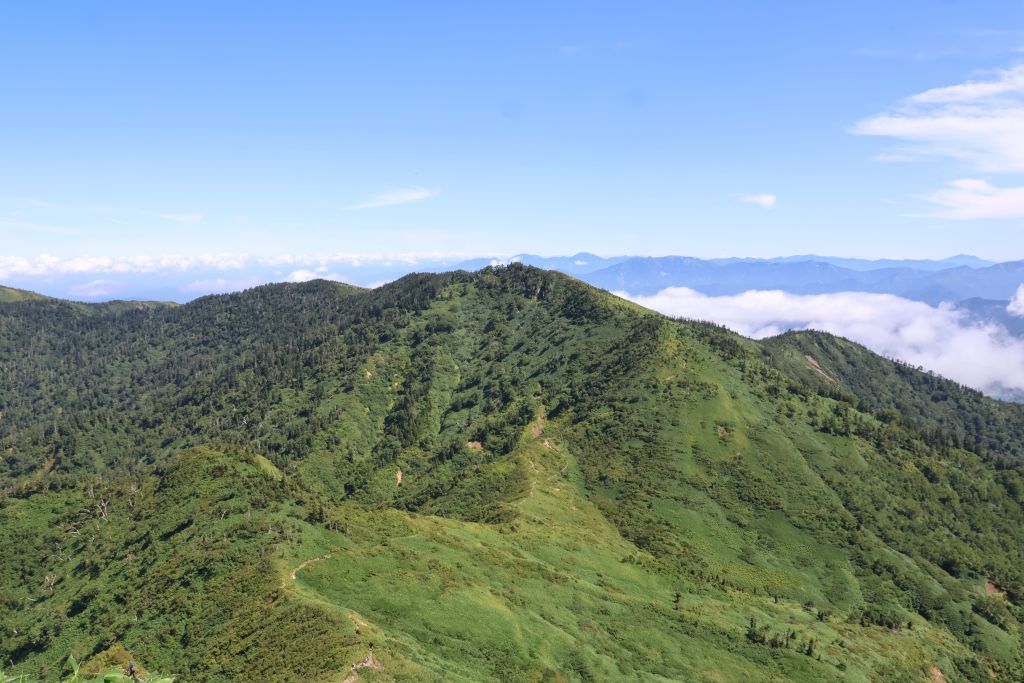 ![]() 右遠方は妙高山だそうです。左手前の山はおそらく佐武流山ではないかと思います。標高2191mで、実は苗場山より高い。 ![]() 妙高山と佐武流山(?)のアップです。 山頂の向こう側を少し下ってきましたが、帰りのバスも往路と同じ場所から出るので、山頂に引き返します。 ![]() 素晴らしい景色です。色々な山がありますが、ゴツゴツした急峻な山も好きですけど、実はこういうなだらかで森と池が点在する景色の山が一番好きだったりします。 ![]() 山頂が2145mで、その先2060m付近まで下ったはずなので、登り返しは標高差80mくらいあるのですが、斜度か緩いので、まったく気になりません。 ![]() 途中で笛吹きタイム。行き交う登山者がいないときに吹き始めたのですが、途中で何組かすれ違い、動画を撮影されていた方もいました。 ![]() この景気で笛吹きは最高です。 ![]() リンドウがあちこちに咲いています。他にも咲いている花はいくつかありました。 ![]() 景色が良すぎて、山頂付近を1時間半ほど歩きましたが、天上の湿原歩きもそろそろ終わり、下山にかかります。 ![]() カッサ湖(田代湖)のようてす。 ![]() 往路も通過した神楽ヶ峰。苗場山は、山頂域のなだらかな山容と裏腹に、そこに着くまではそこそこの急登です。いや、もちろんごく普通の一般登山道なのですが、何を隠そう、前週に三ツ峠以来、右膝痛がぶり返しています。登りは平気なのですが、下りが辛いのです。その前、早池峰山と根子岳ではさほど痛みは出なかったのですが。 ![]() またトリカブトが咲いていました。 ![]() 岩場の上り下りが2~3か所あります。 ![]() 往路の登山口に出ました。往路はここまでリフトで登ってきたのですが、リフトは登り専用なので、下りはさらに歩かなければなりません。正直言うと、登りはひざ痛が出ないし、体力的にはまだ余裕があったので、登りは歩いて下りはリフト、の方が楽なのではが、そんなことを言ったって、ないものはないんだから仕方がありません。 ![]() 膝が痛い上に、相変わらず登山道は川になっています。この濡れた岩の上を伝って歩きます。往路は清流でしたが、下山することには泥水っぽいところも多くなってきました。 まあ、ひざ痛と言っても、歩くのに支障があるかというと、普通に歩けるのですが、スピードは上がりません。先ほどのリフトの区間は、歩くと登りが1時間、下りが45分とありましたが、絶対それより時間がかかるだろうと思いつつ下って行きましたが。 ![]() 和田小屋に着き、ここで登山道は終了です。なんと、コースタイムどおりの45分でした。 ![]() 和田小屋。現在は営業を休止しているみたいです。ここでもう一度笛練習をして、毎日あるぺん号のバスが出る駐車場まで、更に標高差160mほどを下ります。 トータルでは、標高差が登り1000m弱、下り1300m強程度だったようです。往路はリフトを降りて歩き始めたのが6時前、山頂に着いたのが8時50分頃なので所要2時間50分、下山時はだいたい10時20分頃山頂を出発して和田小屋到着が1時50分頃なので、所要3時間半程度てした。往復とも、標準コースタイムよりやや遅かったです。復路のバスが3時15分発で、早く歩いても時間が余ってしまうので、あまりスピードを上げなかったのが一つの理由ですが、もう一つの理由(下山時)は、やっぱり膝が痛かったせいです。登りは歩速を上げても膝に大きな負担はありませんが、下山時は明らかに、スピードを上げれば上げるほど膝の負担は増すので。 往路はある程度余裕があって、汗もそんなにかかなかったのですが(いや、嘘です、汗はかいたはずですが、涼しかったので、汗をかいてもわりとすぐ乾き、そんなに汗ダラダラ、肌がべとべとという印象はありません)、下山時は昼過ぎ、気温も上がり、汗ダラダラになっていました。 ![]() 復路の毎日あるぺん号は、途中こちらの日帰り温泉に立ち寄り、お風呂で生き返って帰宅しました。 膝痛ですが、帰宅後、湿布(それも古くて期限が切れている)を貼って寝たら、翌朝はまだ痛くてしゃがめないくらいでしたが、その夕方にはほぼ痛みは引きました。 左足の骨折(2017年)の半年前くらいからずっと、痛くなった治ったりを繰り返しているのですが(このひざ痛が原因で、月間100km走っていたジョギングをやめました)、整形外科に行っても治りません。寄る年波ということなんでしょうね。 ともかく、苗場山は素晴らしい山でした。もう1回、次は7月末か8月初めの花満開の時期に行ってみたいです。 お気に入りの記事を「いいね!」で応援しよう