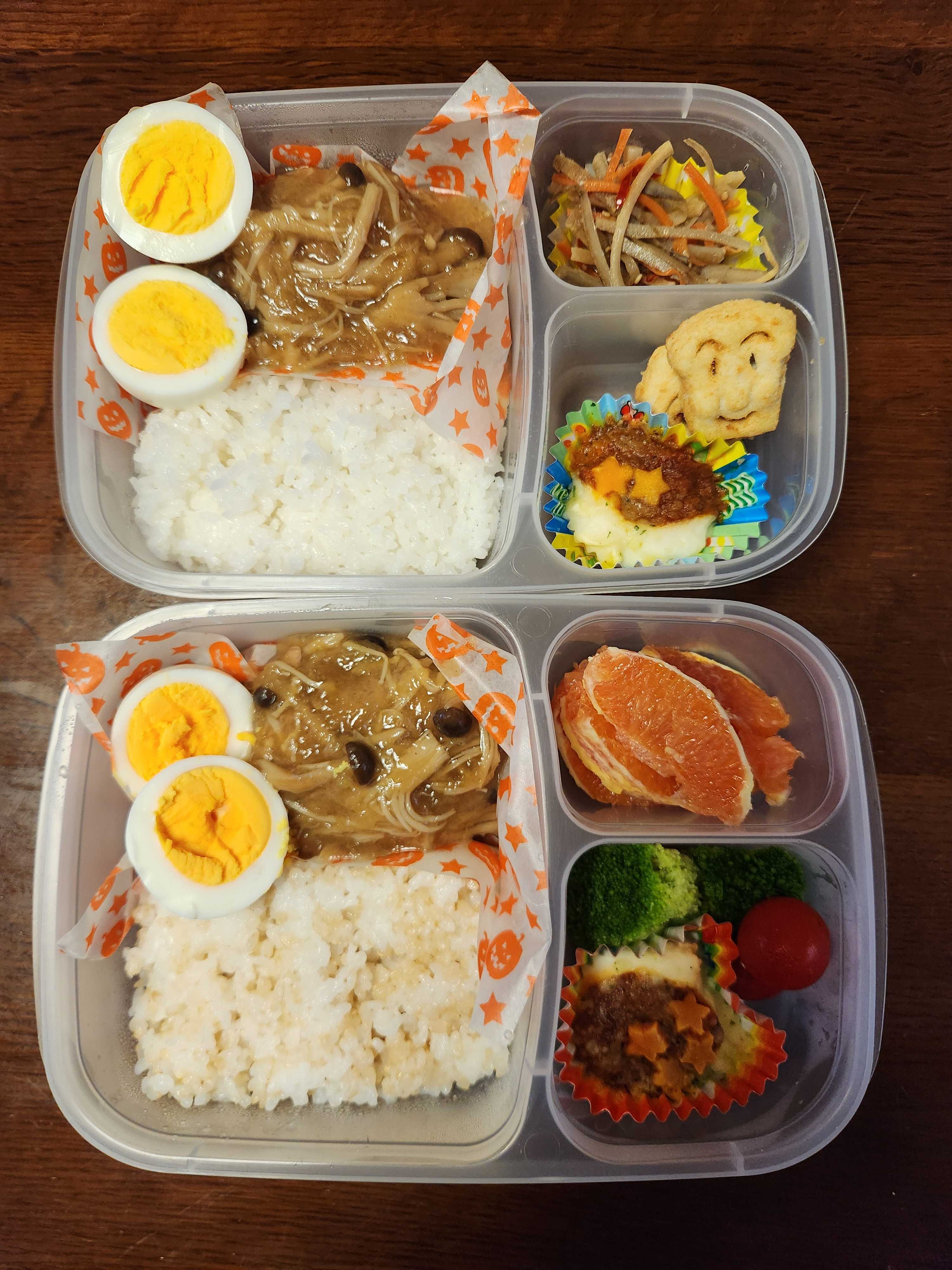 今日も、パンが良いって言われてるけど、父のお弁当も作りました。 メインは、コンソメも赤ワインも切らしていたので、キノコのおろしあんかけハンバーグに。 これはこれで美味しかったんだけど、不服なのか父はお弁当以外にもカップの辛ラーメンを買ってきて食べてたそう💧 ご飯の量聞いたら少しでいいって言ってたのに… よっぽど、私のお弁当嫌なんだろうなぁ〜 でも、作るの止めてやんない‼️ 意地でも作ってやるー💣️