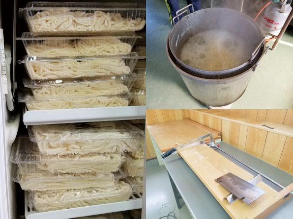 『清水屋松岡亭に顔出し!』 家内との新居浜遠征から、はやめに帰ってきて、、、午後2時過ぎに「清水屋松岡亭」の"うどんパーティー"に顔を出しに行きました。。。 [釜玉バター(ツユ入り)] ![]() 例年は年末にしているのですが、昨年末は忙しかったそうで、今回は年始になったそうです、、、M岡先輩の好きな、芋焼酎を手みやげにしましたねぇ。。。 [うどん] ![]() で、さっき家内と昼ご飯を食べてきたのですが、うどんは別腹かな??? "釜玉バター(ツユ入り)"や"かけうどん"をいただきました。。。 [牛肉や天ぷら等] ![]() 今回は牛肉や天ぷら等も充実しています、、、うどんの麺も少し細めでやや平打ちっぽい感じです。。。それでもしっかりコシがあってGOODでしょう!! うんうん、旨い旨い~☆ [かけうどん] ![]() しっかりうどんを二杯いただいて、お腹PanPanPanで、、、この後の店の予約に向かいましたねぇ。。。 [各アップで] ![]()