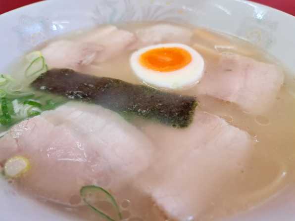 『今年初訪問。。。(大鵬軒 石井支店)』 今日のお昼はBARI人のソウルラーメン、「大鵬軒 石井支店:リンク多いのでたどってください」さんです、、、私的には今年になって、初訪問でしたねぇ。。。 [特製ラーメン:¥650] ![]() 午後1時20分ころに暖簾をくぐると、お客さんは一人でした、、、私はカウンター席に着き、"特製ラーメン"を発注です、、、"おでん"を一本取って待つこと約4分、ラーメンができあがりました。。。 [おでん:¥120] ![]() さぁ気になるお味です。。。と、その前に、、、昨年から厨房にお母さんのご子息さんが立っていました、今回ラーメンょ作ってくれたのは、お母さんでなくそのご子息さんですねぇ。。。 [アップで] ![]() まず麺は、加水やや多めのシットリ系ストレート麺、、、ゆで加減はお母さんより固めで私好み!! そしていつものクセがあるけど、あっさり塩味の久留米系豚骨白湯のスープに、シャキ系チャーシューが6枚、メンマ、ゆで卵、ネギ、海苔のトッピング。。。うんうん、旨い旨い~☆ [各アップで] ![]() ************************************************* 【お店の情報】 住所:愛媛県今治市別宮町7丁目2-12 電話:0898-23-4774 営業時間:11:00~? 定休日:水曜日 駐車台数:7~8台位 HP:? 【メニュー】 ※この記事ご参照ください ************************************************* お気に入りの記事を「いいね!」で応援しよう