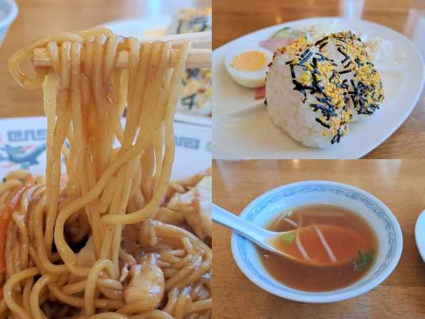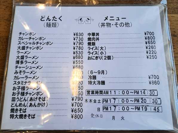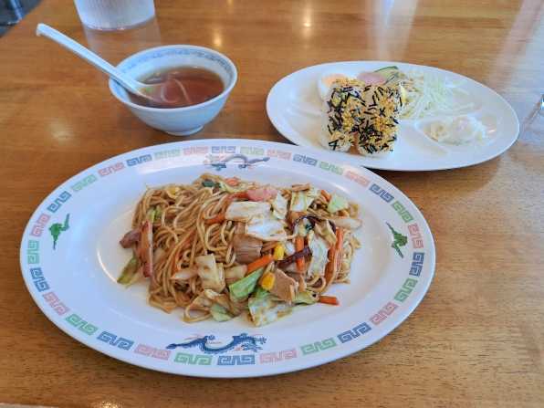 『焼きそば定食(どんたく)』 今日のお昼は「博多チャンポン どんたく:リンク多いのでたどってください」さんです、、、お腹がPEKOチャンでしたので、定食ものを食べに行きましたねぇ。。。 [アップで] ![]() 午後1時20分過ぎに入店すると、店内にお客さんはいませんでした、、、私は空いているテーブル席に着き、"焼きそば定食"を発注です。。。やがて待つこと約6分、、、定食ができあがりました。。。 [焼きそば定食:¥850] ![]() さぁ気になるお味です。。。"焼きそば"の麺は中細で手もみ風の緩やかウェーブ、、、少し柔らかめに炒められています。。。そしてソースはお好みソースっぽい甘めでトロっとしていて、ややピリ辛感もあります。。。具材は豚肉、イカ下足、キャベツ、人参、キクラゲ、青菜、カマボコ、天ぷら、コーン等々で盛り沢山!! [各アップで] ![]() また定食にしましたので、おにぎり2個、ゆで卵、ハム、キャベツ、フルーツが付いてきます、、、焼きそばほ食べておにぎりを食べると、W炭水化物でしょう。。。でもこれがイイんです!! うんうん、旨い旨い~☆ [メニュー] ![]() ![]() ※インスタグラム https://www.instagram.com/nagaifumihide/ ***************************** 【お店の情報】 住所:愛媛県今治市片山2-1-17 電話:0898-32-9397 営業時間:11:00~14:30 水~土:17:00~20:30 日:17:00~20:30 定休日:月・火曜日 席数:22席 駐車台数:7台 【メニュー】(一例) ※記事中写真ご参照ください ****************************** #色眼鏡 #ブログ #食べ歩き #ラーメン #うどん #そば #グルメ #愛媛 #香川 #高知 #徳島 #今治 #松山 #西条 #新居浜 #B級 #ご当地 #バイク #ツーリング お気に入りの記事を「いいね!」で応援しよう