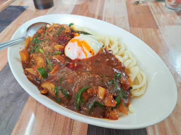 『ニラじゃが麻婆うどん温玉のせ(いこ食堂)』 今日のお昼は、金曜日恒例の「いこ食堂:リンク多いのでたどってください」さんです、、、いつもは「IMABARI I.Boys」のメンバーで集合するのですが、今日はみんなの都合が悪く、私とNSさんの二人でしたねぇ。。。 [アップで] ![]() 午後1時過ぎに入店すると、店内には2組のお客さんです、、、我々はいつもの奥のテーブル席に着き、NSさんは先週私が食べた"ムーシーロー丼"を注文したので、私は未食の"ニラじゃが麻婆うどん温玉のせ(名前長っ!!)"をお願いしました。。。やがて待つこと約8分で"ムーシーロー丼"ができあがり、、、さらに待つこと約4分で"ニラじゃが麻婆うどん温玉のせ"のできあがりです。。。 [ニラじゃが麻婆うどん温玉のせ:¥1200] ![]() さぁ気になるお味です。。。"ニラじゃが麻婆うどん温玉のせ"は、先月に私がお願いした"スタカレー風麻婆丼"をアレンジしてできた料理だそうです、、、店主さんがジャガイモが好きなので入れてみて、彩りに温玉をトッピングですねぇ。。。ツブツブの挽肉にジャクジャクのニラの餡、それにトロ~リの温玉が、うどんによく絡みます、、、結構ピリ辛なので、食べるに連れ身体もポカポカ。。。うんうん、旨い旨い~☆ [各アップで] ![]() ※インスタグラム https://www.instagram.com/nagaifumihide/ ***************************** 【お店の情報】 住所:愛媛県今治市阿方甲376-2 電話:0898-52-7257 営業時間:11:00~15:00、17:00~22:00 定休日:木曜日 駐車台数:約15台 席数:33席 HP:https://www.instagram.com/ikoshokudo2023/?hl=ja 【メニュー】(一例) ※この記事ご参照ください ****************************** #色眼鏡 #ブログ #食べ歩き #ラーメン #うどん #そば #グルメ #愛媛 #香川 #高知 #徳島 #今治 #松山 #西条 #新居浜 #B級 #ご当地 #バイク #ツーリング お気に入りの記事を「いいね!」で応援しよう
