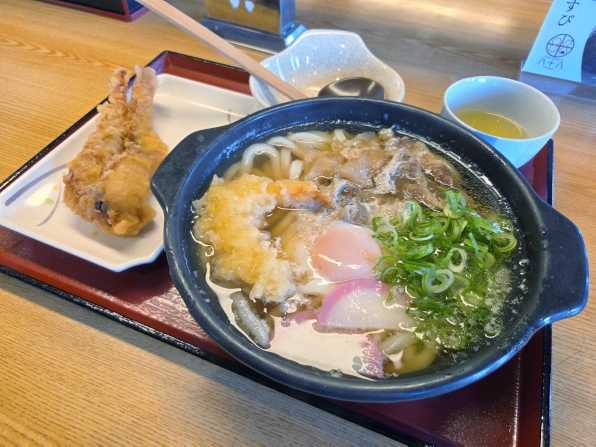 『鍋焼きうどん(八拾八うどん 東予店)』 2026年が明けて二日目の今日、母の遺品整理があるので早めのお昼に出かけました、、、でもさすがに2日、お店がほとんど開いていません。。。ぐるっと今治市街、西条市(旧東予市)をウロウロして、、、開いていた「八拾八うどん 東予店」さんを再訪です。。。 [アップで] ![]() 午前11時15分頃の、比較的早い時間でしたが、店内は結構混んでいます、、、セルフなので"鍋焼きうどん(中)"をお願いして、少し時間がかかるらしく札をもらい、"ゲソ天"を一つ取って、会計をして席に着きました。。。やがて待つこと約5分、、、"鍋焼きうどん"のできあがりです。。。 [鍋焼きうどん(中):¥920+ゲソ天:¥270] ![]() さぁ気になるお味です。。。まず麺は太目でエッヂが立ち、程よいネジレもあります、、、前回は冷たいうどんでしたので強いコシでしたが、今回は逆に熱々なので円やかなコシでしょう。。。表面は少しニュルっとしていて、釜抜きっぽい喉ごしがGOOD!! [ゲソ天トッピング] ![]() そしてトッピングは卵、エビ天、牛肉、カマボコ、ネギ、、、そこにゲソ天も乗せたので、なんとも豪華盤です!! 私はまず卵の黄味をとんすいに取り、すき焼き風に麺を絡めていただきます。。。そのその後、残った黄味を鍋に戻し入れて、直鍋でいただきます、、、私流の"鍋焼きうどん"のルーティンですねぇ。。。うんうん、旨い旨い~☆ [各アップで] ![]() ※インスタグラム https://www.instagram.com/nagaifumihide/ ***************************** 【お店の情報】 形態:セルフ 住所:愛媛県西条市周布694-3 電話:0898-64-0033 営業時間:平日:11:00~15:00、 土日:11:00~20:00 定休日:火曜日 席数:約50席 駐車台数:約30台 HP:https://www.88udon.net/ 【メニュー】(一例) ※この記事ご参照ください ****************************** #色眼鏡 #ブログ #食べ歩き #ラーメン #うどん #そば #グルメ #愛媛 #香川 #高知 #徳島 #今治 #松山 #西条 #新居浜 #B級 #ご当地 #バイク #ツーリング お気に入りの記事を「いいね!」で応援しよう