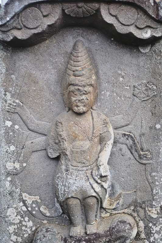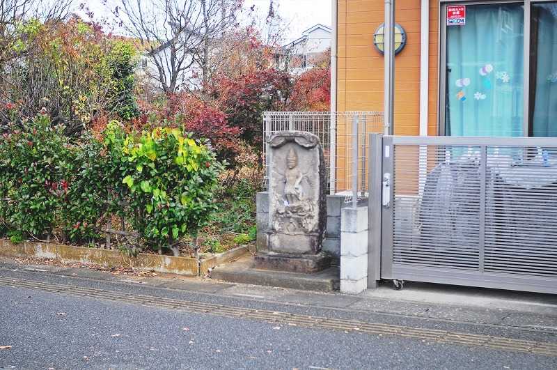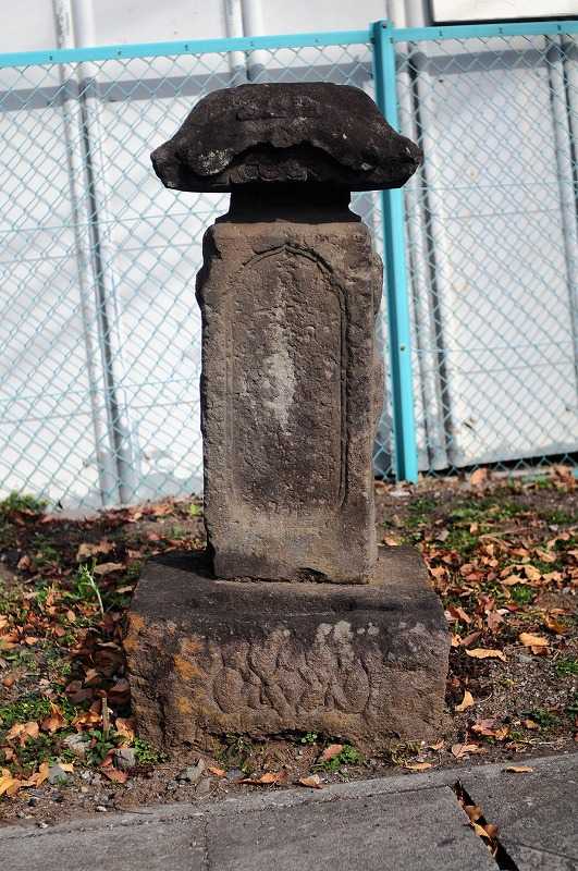 小泉の石仏の続きです。その先、泉台は一か所だけなので一緒に紹介します。 泉が丘通り泉台一丁目交差点南路傍 上尾市小泉5-29[地図] ![]() 泉が丘通りを北上して県道323号線の泉台一丁目交差点に出る150mほど手前、道路右側の歩道の奥に石塔が立っていた。右の建物は保育園。 ![]() 庚申塔 寛保元年(1741)上部を唐破風笠風にした石塔の正面 六臂の青面金剛立像。笠の両脇に日月雲。 ![]() 頭上にとぐろを巻いた蛇を乗せた青面金剛。顔は削れていてはっきりしない。その頭の上をよく見ると梵字「サ」が刻まれている。これは初見か?前の右手は剣。左手は蛇、または羂索だろうか?上右手は矛というよりも短剣、左手は法輪。下手には弓矢。 ![]() 足元に大きな全身型の邪鬼が腰を上げて背中を踏まれている。その下に三猿。両脇の見猿と言わ猿は片手使い、内を向いて座り中央の聞か猿を指さす。全体にユニークなデザインといえそうだ。塔の最下部、中央に「庚講中貳拾▢」両脇に武州足立郡 石戸領小泉村。さらにその両脇に造立年月日が刻まれていた。 小泉交差点北交差点角 上尾市小泉982[地図] ![]() 県道57号線の小泉交差点から北へ進むと、150mほど先のT字路交差点で県道は右へ分かれてゆく。この交差点の角に石塔が立っていた。 ![]() 庚申塔 造立年不明。四角い台の上の唐破風笠付き角柱型の石塔。かなり風化が進んでいる。 ![]() 石塔の正面を彫りくぼめた中に銘が刻まれているがほとんど読めない。中央最上部は梵字「ウン」か?最下部は「所」右下は古泉村、左下に吉日。 ![]() 下の台の正面に三猿。両脇が内向きに座る構図。こちらも風化が著しい。 ![]() 塔の両側面には蓮華が彫られていて、その隙間にそれぞれ六名の名前が刻まれていた。この部分だけはなぜか銘がしっかり残っている。 大宮ゴルフコース入口 上尾市小泉1128西[地図] ![]() 小泉交差点の150mほど北の庚申塔の立つT字路交差点を右折して道なりに進むと、道路は緩やかにカーブして大宮ゴルフコースの間を北へ向かう。途中道路左側にゴルフクラブ入口があり、その向かいの交差点の角に小堂が立っていた。 ![]() 小堂の中 庚申塔 天保3(1832)四角い台の上の角柱型の石塔の正面に大きく「庚申塔」下の台の正面に右から武州足立郡 小泉村「講中」 ![]() 塔の左側面は無銘。右側面に造立年月日が刻まれている。 泉が丘通り市境南路傍 上尾市泉台3-2-9[地図] ![]() 県道57号線を北へ進み、大宮ゴルフコースを抜けてその先の交差点を右折、しばらく先の泉が丘通りの交差点を左折して北へ向かうと、桶川市との市境「下日出谷東一丁目交差点」のすぐ手前、道路右側の歩道の奥に小堂が立っていた。 ![]() 小堂の中 庚申塔 宝永5(1708)小泉の泉乗寺薬師堂に続く板碑型三猿庚申塔。こちらの造立は30年後である。 ![]() 塔の正面中央 梵字「バイ」の下「奉造立庚申供養處」右脇に造立年月日。左脇に武刕足立郡石戸領小泉村。左の縁の部分に此方ひらかた道。 ![]() 下部に三猿が正面向きに肩を寄せ合い座る。三猿の右脇に結衆。塔の最下部に六名の名前が刻まれている。 ![]() 前回の小泉の泉乗寺薬師堂の板碑型庚申塔に続いてこの庚申塔の側面にも銘が刻まれていた。板碑型石塔の側面には普通は銘はないという認識だったが、あるいは誤りだったか?右側面 此方十り □□ 右あげを道 左をけ加ハ道。一部読みにくく自信はない。 ![]() 左側面は風化のためいっそう読みにくいが、此方の下は資料によると、いしと川ごい道だという。 ![]() 背面にも銘。此方 加う野すミちと刻まれている。 お気に入りの記事を「いいね!」で応援しよう