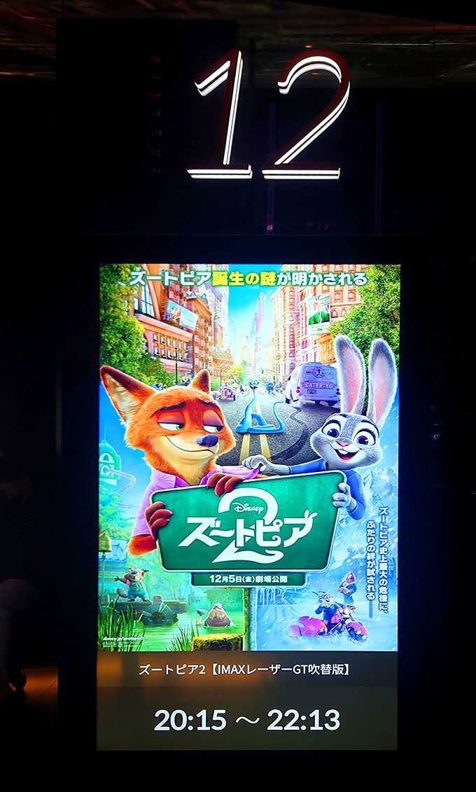 2025.11.24.グランドシネマサンシャイン池袋 ![]() ![]() ![]() ![]() ![]() ![]() ![]() ぬいぐるみ展示『ズートピア2』 アミューズメント・プライズ 2025.11.24.グランドシネマサンシャイン池袋 ![]() ![]() コラボCafe『ズートピア2』 店内装飾展開中!期間:2025/11/21(金)~2026/1月上旬(予定) 2025.11.24.撮影 グランドシネマサンシャイン池袋 クラッパーズダイナー クラッパーズダイナーにて『ズートピア2』店内装飾展開中! グランドシネマサンシャイン 池袋5階の「クラッパーズダイナー」にて、『ズートピア2』期間限定特別装飾を実施中です! 映画の世界観を一足先にお楽しみください。 展開期間:2025/11/21(金)~2026/1月上旬(予定) 実施場所:グランドシネマサンシャイン 池袋5F クラッパーズダイナー ![]() ![]() ![]() ![]() ![]() ![]() 飲食売店『ズートピア2』 トッパー付きドリンクカップ(全4種) 2025.12.5.グランドシネマサンシャイン池袋IMAXレーザーGT ![]() ![]() 屋外広告『ズートピア2』ZOOHOシネマズ 2025.12.7.TOHOシネマズ新宿 ![]() ![]() 宣材うちわ『ズートピア2/星つなぎのエリオ』 2025.8.2.新宿バルト9 ![]() ![]() 大型スタンディー『ズートピア2』 2025.11.28.109シネマズ川崎 ![]() ![]() バス型スタンディー『ズートピア2』 2025.11.28.109シネマズ川崎 ![]() ![]() レビュー『ズートピア2』 相棒への特別な気持ち。かけがいのない二人の友情。 豪華声優陣、上戸彩、柄本明も好演 2025.12.5.グランドシネマサンシャイン池袋IMAXレーザーGT 「ズートピア」誕生にまつわる哺乳類と爬虫類の対立の秘密。 闇の権力者の陰謀が暴かれる! 素直に楽しかった。 とにかく冒頭から流れるような展開がだれずに続いて見れました。 かけがいのない二人の友情。 相棒への特別な気持ち。 エンタメながらも現実社会の移民問題や人種差別を、少しだけ考えさせてくれる。 主題歌、エンディングの歌もよかった。 にんじんレコーダーがかわいくてググったら、録音再生可能「にんじんボールペン」他、ちゃんと売ってました! 日本語吹き替え版で鑑賞。 名コンビ、主演二人の演技は安定していて、特に上戸彩がとってもキュート。 他にも声優陣が豪華。 中でも、「めくらやなぎと眠る女」他すでに数本の実績もある柄本明の演技が面白かった。 なにより、こういう仕事でも断らずに演る姿勢がイイです。 ![]() ![]() ![]() ![]() ![]() DolbyCINEMA版ポスター『ズートピア2』 2025.12.5.丸の内ピカデリーDolbyCINEMA ![]() ![]() ![]() IMAX限定入場者プレゼント『ズートピア2』 IMAX入場者特典A3ポスター 2025.12.5.グランドシネマサンシャイン池袋IMAXレーザーGT ![]() ![]() ![]() ![]() 第1弾入場者プレゼント『ズートピア2』 限定ビジュアル パノラマボード 2025.12.5.グランドシネマサンシャイン池袋IMAXレーザーGT ![]() ![]() 劇場ロビーディスプレイ(7)『ズートピア2』 ZOOHOシネマズへようこそ! 2025.11.23.TOHOシネマズ日比谷 ![]() ![]() ![]() ![]() 劇場ロビーディスプレイ(6)『ズートピア2』 2025.11.23.TOHOシネマズ日比谷 ![]() ![]() 劇場ロビーディスプレイ(5)『ズートピア2』 2025.11.23.TOHOシネマズ日比谷 ![]() ![]() ![]() ![]() ![]() 劇場ロビーディスプレイ(4)『ズートピア2』 2025.11.23.TOHOシネマズ日比谷 ![]() ![]() ![]() 劇場ロビーディスプレイ(3)『ズートピア2』 2025.11.23.TOHOシネマズ日比谷 ![]() ![]() ![]() ![]() 劇場ロビーディスプレイ(2)『ズートピア2』 2025.11.23.TOHOシネマズ日比谷 ![]() ![]() 劇場ロビーディスプレイ(1)『ズートピア2』 2025.11.23.TOHOシネマズ日比谷 ![]() ![]() ![]() 大横断幕『ズートピア2』イルミネーション・大ポスター 2025.11.23.TOHOシネマズ日比谷 ![]() ![]() イベント『ズートピア2』イルミネーション・大ポスター 日比谷ステップ広場・東京ミッドタウン日比谷 2025.11.23. ![]() ![]() イベント『ズートピア2』イルミネーション・メインツリー 日比谷ステップ広場・東京ミッドタウン日比谷 2025.11.23. ![]() ![]() ![]() ![]() お気に入りの記事を「いいね!」で応援しよう