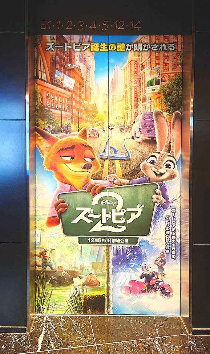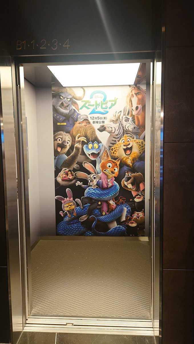 2025.11.22.グランドシネマサンシャイン池袋 ![]() ![]() ![]() ![]() エレベーターラッピング広告『ズートピア2』