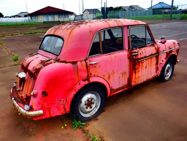 一人と一匹JA11で散歩に行きます 途中きになる車を見かけました。 何だこの車は!!? ![]() このデザイン外車だろうな 左ハンドルだし ![]() ![]() 「AVANTI Ⅱ」聞いたこと無いなあ ![]() このロングノーズ&ショートデッキなスタイルはアメ車ぽい 塗装はヤレてタイヤはパンクしてるな。 角張ったバンパーは良いっすね ボディカラーが微妙、スポークホイールもちょっと似合ってないかも ![]() 後姿がかっこいいな トランク上のラックは似合わないなあ 顔つきはかわいらしいけどバックシャンはスポーツカー臭がプンプンしますな。 ![]() 調べたら「スチュードベーカー」が1962年に発売した「スチュードベーカー・アヴァンティー」1963年に自動車生産撤退に伴い生産終了わずか4643台しか作られなかった。 その後に権利や生産工場が地元に移ったりして「アヴァンティ-Ⅱ」として再販されたもののようです。 エンジンには300馬力327 cu in (5.4 L) のシボレー C1コルベットのV8エンジンとかも搭載されてたとか・・・どっちにしてもかなりレアな車でしょうね日本国内に数台あるかレベルじゃないかな。 本場アメリカでもめったに見れなさそうなマイナーな車種な気がする。 ![]() そのお隣のこちらはダットサン210すな1957年~1959年ともっと古いな 博物館級でしょ!! これもヤレ具合が良い感じ ウインカーとミラーは位置換えてそうだな グリルに国旗? ![]() ボンネットにオーナメントは今は見れなくなってるすね。 なんかシャーザクっぽい色も赤いし・・ ![]() この字体も良いっす ![]() 車内 ![]() HINOMARUDRIVINGSCHOOL? 教習車だったのかな?グリルの日の丸マークも関係してる? ![]() DATSUN1000 タクシーの排気量上限1000ccアップに伴い開発していた新エンジンが却下され短期、低コスト、低リスクの為に日産でライセンス生産されていたオースチン・A50ケンブリッジのBMC・Bシリーズエンジン(日産社内型式は1H型)のストロークを縮めた小排気量のC型エンジン(34馬力) 発案者にちなんで「ストーンエンジン」と呼ばれた。 ![]() 今時4駆やピックアップトラックでもでもなけりゃ6穴ホイールは無いよね タイヤはこっちも潰れてる ![]() 俺のUF66もそうだけど紅い車って消防車や郵便局イメージがするよね ![]() 後ろにも日本国旗 リアウインドーの「やさしく走ろうTOKYO」 トランクのハンドル、ナンバー灯のカタカナ「ダットサン」良いね~ ![]() いいもんみれました!!! 残念ながら今はこの場所にはもうありません 誰かレストアしてるのか、外国に輸出されてるのか、鉄屑として売られてしまったのかも・・・ お気に入りの記事を「いいね!」で応援しよう