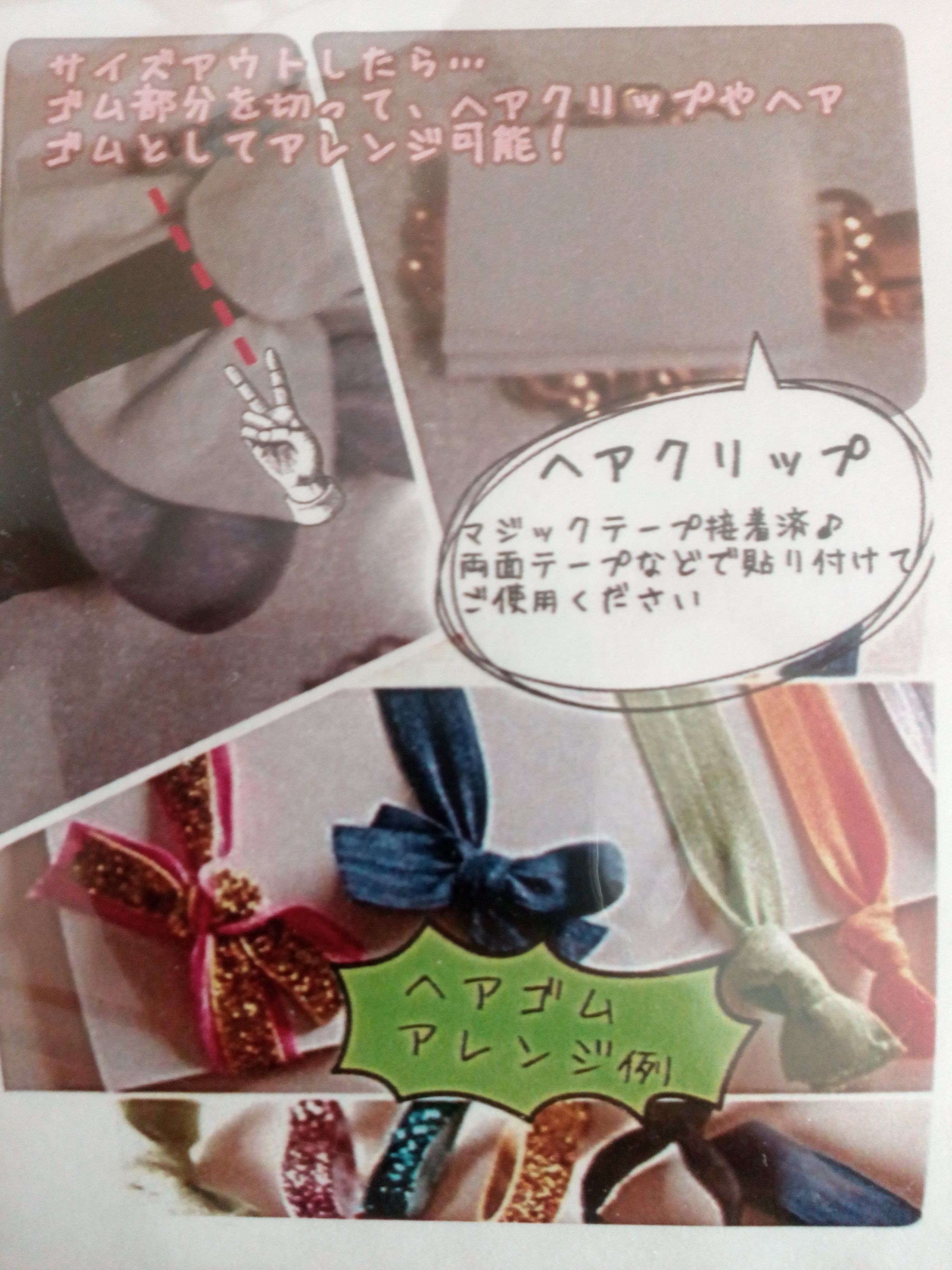 すぐサイズアウトしてしまいそうな事、 汗だくになっても洗濯できない事に… という訳で、長く楽しむ方法を考えてみました。 まず、先程のヘアバンド裏面↓ ![]() ヘアゴムの部分と、リボン部分をカットしたら 再利用、出来そうです。 そこで、こんなものを作ってみました。 ![]() クリップに、マジックテープを接着剤でつけただけ! 1個作れば着せ替えみたいに着脱して楽しめるッ!!…かも? 直接接着してリボンをポニーフックにしても良さそう ↓↓↓↓↓↓ お気に入りの記事を「いいね!」で応援しよう