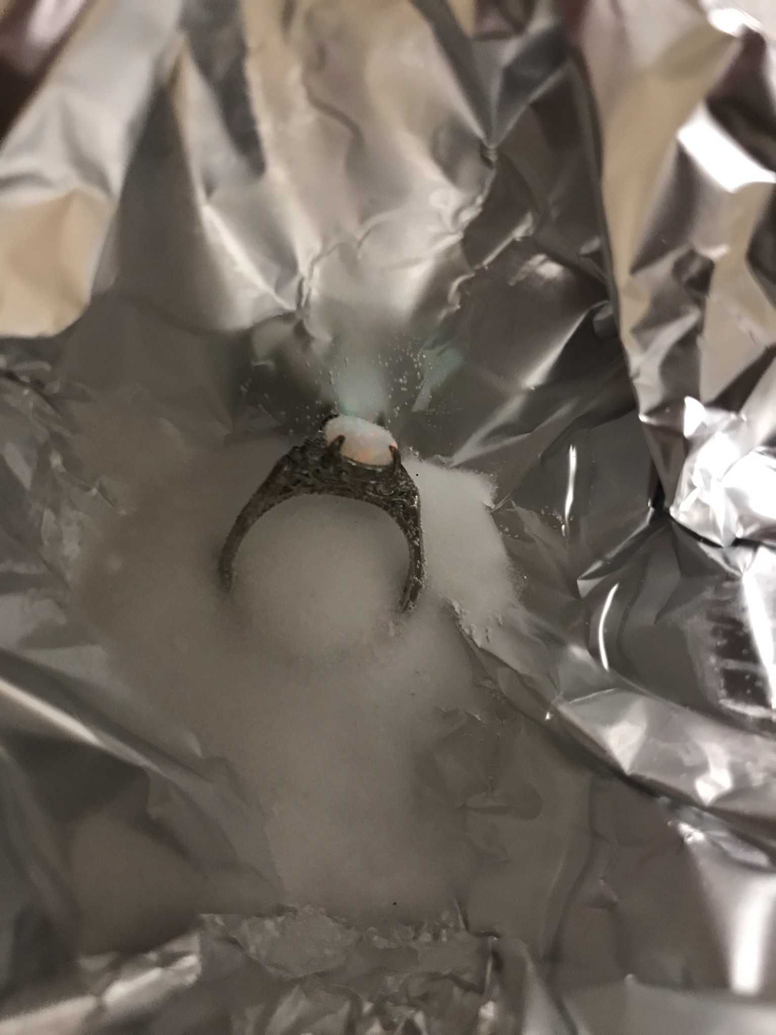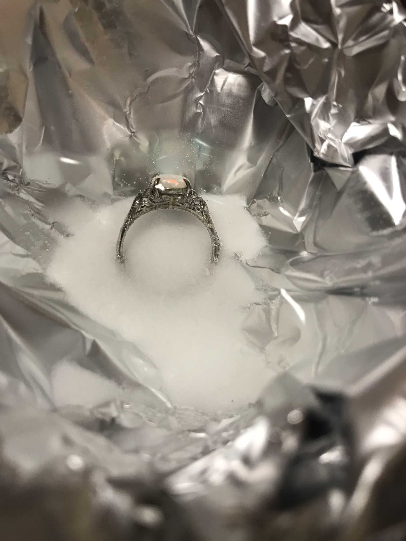 ちなみに、完全に自己責任でやっていますので、宝石が付いていようが関係なく思いきりドボンと漬けております。 専門知識を持っている方が見たら悲鳴を上げられるかもしれません 今回試したのは、オパールの指輪とCartierの指輪で実際にやってみました ※高価なアクセサリーの場合は販売店でメンテナンスをしてくれると思いますので、あえてチャレンジなさらない方が無難だと思います。 用意したものは… 指輪 アルミホイル 重曹 お湯 耐熱コップ 割り箸or手袋 私は湯呑み茶碗にアルミホイルを敷いて、重曹とお湯を入れました オパールの指輪 ![]() 開始前、オパールは元々輝いていましたが、リングや台座部分は全体的に黒く感じます。 オパールの意味を調べると「希望の石」10月の誕生石だそうです。 躊躇なくドボンと入れてみました! みるみる黒くなり若干不安になりつつ、待ちます。 ![]() ![]() 台座など細かい部分は歯ブラシで優しく擦り洗いをしました ![]() これには1人で大興奮!笑 実はこのオパールの指輪は母親から譲り受けたものです。 全く同じデザインのオパールの指輪を姉も持っているので、姉にも画像と結果を報告しました ![]() この指輪、デザインでお察しの通り、かなりの年代物だそう。 母親曰く「本物かは分からない」と言っておりました。 薄いですが、18Kの刻印があるので、恐らくシルバーではない、はず。 というのも、私と姉は金属アレルギー持ちで、長時間シルバーの指輪をすると指が変色してしまうので… ![]() お次は、ちゃんとお手入れもせず、放置していたら謎の汚れが発生したCartierの指輪も同じくドボンと浸けてみました笑 ![]() 今回は学習して、取り出す時は割り箸で作業しました 皮膚が弱い方は手袋で作業するのが確実だと思います。 ![]() こちらもピカピカになりました! ![]() 実際はもっとピカピカになったのですが、光り過ぎてピントを合わせるのに苦戦しました。 家にある物だけで手軽にお手入れ出来て、スッキリ綺麗になりました! お気に入りの記事を「いいね!」で応援しよう