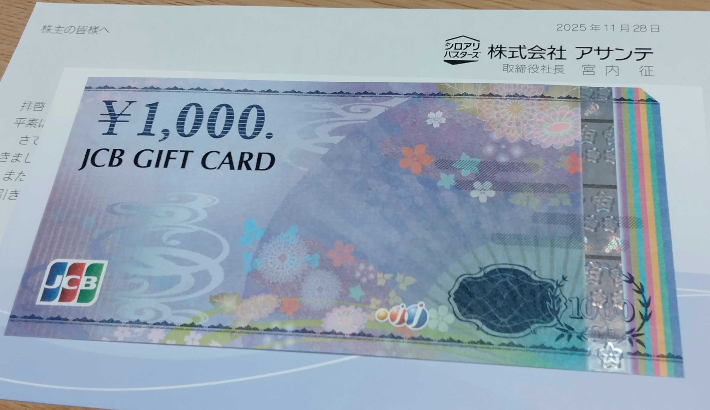 にほんブログ村金券の株主優待品いろいろ到着したよ~金券はうれしいよね~アサンテはJCB…