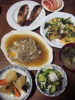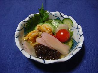 メニューはひっぱりうどん材料 2人分乾麺 200g卵黄 2個なす、きゅうり 各1/2本しそ 4枚納豆昆布、白煎りごま 各大さじ1味の素、瀬戸のほん塩、しょうゆ 各適量作り方•1. ボウルに納豆昆布を入れて湯大さじ2でもどし、よくかき混ぜておく。•2. 野菜は、粗いみじん切りにする。ボウルに、瀬戸のほん塩水を作り、野菜を5分ほどさらし、水気をきる。•3. 味の素、1.2.しょうゆをよく混ぜておく。•4. 乾麺は好みの固さにゆでて、あつあつに卵黄をのせ、3.白煎りごまをかける。調理ポイント:冷蔵庫に冷やして、いつでも使えます! 麺類は塩分取りすぎになりがちですが、味の素の旨み効果で、少しのしょうゆで薄味にしてもおいしくいただけます。身体の脂肪を燃焼したければ、青南蛮や赤唐辛子、七味唐辛子を利用する。フライパンたこ焼26センチフライパン1枚分ゆでタコ 150g長芋 100g小麦粉 75g卵 1個キャベツ 1枚小ネギ 1本味の素 小さじ1/2AJINOMOTOサラダ油 大さじ3天かす、青海苔、ピュアセクトマヨネーズ、紅ショウガ、お好み焼ききソース 各適量作り方•1. ボウルに水180ccと味の素、長芋すりおろし、卵を泡立て器でよく混ぜる。•2. 1.のボウルに2、3回に分けて小麦粉を入れ、細かく切った、キャベツ、小ネギもよく混ぜ合わせる。•3. 熱したフライパンにAJINOMOTOサラダ油を入れて、薄切りゆでタコ、2.天かす、紅ショウガを入れて焼く。•4. 焼き上がったら、ソース、青のり、ピュアセクトマヨネーズをたっぷりかけていただく。調理ポイント:卵焼器で作れば切り分けやすい! 機嫌の悪い子供の原因に便秘や疲れ、栄養素不足が考えられます。便秘の原因は食物繊維の不足のみならず、しっかりと量を食べていなかったり、油分が不足していたり、酵素不足が考えられます。長いもの消化酵素、AJINOMOTOサラダ油やピュアセクトマヨネーズの腸内潤滑、たこのタウリンによる疲労回復効果、味の素の旨みによる食欲増進で解消しましょう。おやつきゅうりきゅうり 2~3本(250g)味の素 小さじ1/3グラニュー糖 大さじ6しょうゆ 大さじ3酢 大さじ1作り方•1. 密閉容器か袋に味の素、グラニュー糖、酢、しょうゆ、を入れてよくまぜる。•2. きゅうりは、長めの乱切りにして、常温で重石をして半日漬ける。この料理について 塩分はきゅうりの4%砂糖はきゅうりの25%きゅうりの歯ごたえを楽しむスナック感覚の漬物です。きゅうり:きゅうりには利尿効果と体を冷やす働きがある。90%以上が水分で比較的多く含まれているのはビタミンC,カリウム、カルシウムですが、栄養というより、歯ざわりや味覚を楽しみ、食をすすめるための野菜といったほうがよいでしょう。きゅうりの苦みの部分にも薬効がある。苦みのもとはククルビタシンといわれる炭水化物。このククルビタシンにはいろいろ種類があるがその中の一部には抗腫瘍性の作用がある。やけどをしたときには、きゅうりのすりおろしを患部に塗った記憶がありませんか。新鮮なきゅうりは緑色がさえ、つやがある。とげが痛いくらいとがっているものが新鮮。冷蔵庫保存で4~5日OK。本日の弁当
