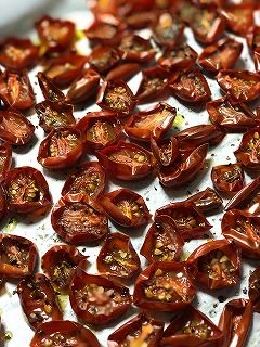 ![]() ショコラというだけあってブラウンがかったトマト これをドライトマトに 塩、コショウ、オリーブオイルをかけて ![]() ドライトマトというよりハーフドライトマト ![]() オーブンで120度で2時間弱焼く オリーブオイルにつけたニンニクとオリーブをたっぷりとお酢を加えて 酢漬けに