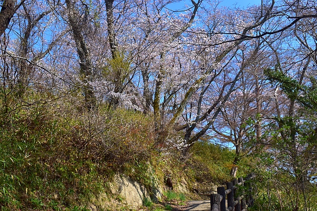 この城は代表的な山城 急斜面に守られていて 今の道も大変なキツイ坂道なのです 登れるかなー 本丸 二ノ丸は特に急斜面になっています 何度も何度も休みながら登り 二ノ丸の桜が見えました 結構 咲いているみたい もう少しです とても辛いですが ことし初めてヤマブキの花見れました 漸く 二ノ丸跡に着きました そしてもう一段登って ようやく本丸跡に到着 もう足がふらついて でも 予想以上に咲いていて嬉しい 南に仙台市街地 この付近はまだまだ田んぼが 北に利府のJR新幹線の車両基地が広がります こちら側から登る山道も 桜が沢山見られます 二ノ丸広場 ここにも沢山の桜がワイルドに育ってます 一通り眺めたので下山しましょう 登るのも辛かったのですが 下りも怖い 転がり落ちそう 入り口から本丸までの道 途中の斜面は震災の地震で 崩れて 今もその爪痕が残っていました 土嚢を積み上げたまま 城跡を後に 次の県民の森へ移動しました 明日もまた この続きを書きたいと思います 明日は街が居なくお天気は崩れるよう !