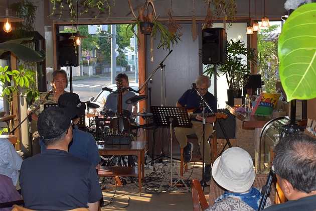 7月5日 仙台は曇り時々晴れの34.0℃ 午前も不快な暑さで湿度も高く 危険なので大人しく 午後に今回は車で飲み物を買いに 今市のコンビニへ行き 何とお安くスイカ売ってましたので オニギリとパンは昼に スイカは山形に持って帰ります 午後3時に準備して オルタナに そして山形へそのまま 帰るつもりで家を出ました 午後の珈琲を 今回は冷たいコーヒー 店を閉めて ライブの準備始まりました 私は邪魔しない様にして そのままオネタナで 予定より数分遅れて 今回のオルタナ・ミニライブ開始 リードボーカルは時々会うMさん 皆さん定年退職した年代で 結成30年のお仲間さん 私の10年以上若い年代 まだまだ現役の気の合ったグループ 特に 山下達郎が好きな様で 今回も数曲 達郎の曲も そして 波乗りは店のマスターの特異分野だった 今回も限定18名の観客 皆さん同じような趣味の様で 和やかなひと時でした 私はそのまま 山形に走りました 流石に市内は混雑 でも6時には高速に乗れました 制限速度を守っても 十分日暮れ前に着きそう こんな時は自動車道は便利と感じます 山形道の山形蔵王の出口を出る頃 辛うじて夕日がまだ沈まない 間に合いました 今日は家の在庫で夕食を取り 買い物は明日に お月様は明日見ましょう とりあえず体を洗ってサッパリとした夜でした 明日は4日分の食料の買い出しです ! 次回は相方も来てくれると言ってくれました
