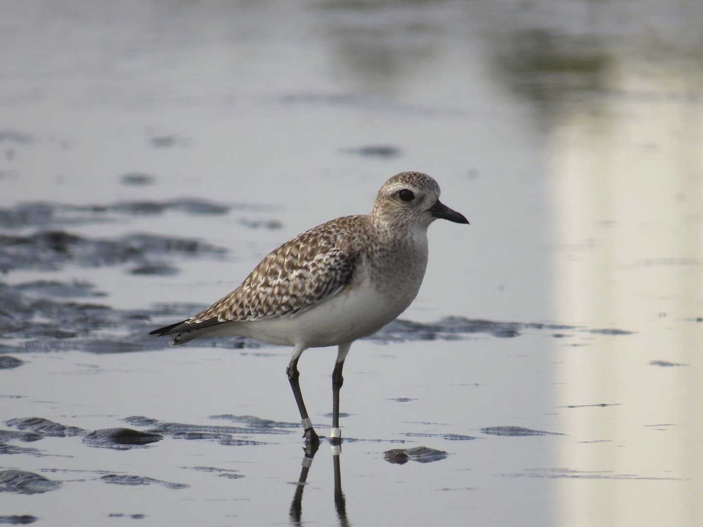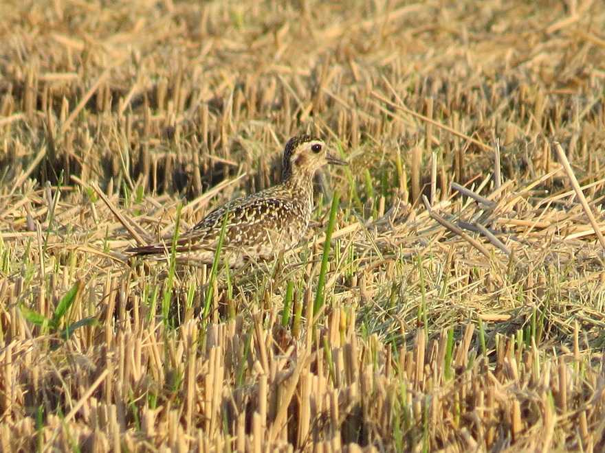 23日に浮島でシギ・チドリとの出会いを楽しみました。 観察したうち、ムナグロと報告した件で、嘴が太く体もがっしりしているのでダイゼンではないかと指摘をいただきました。 撮影画像と過去観察したムナグロ、ダイゼン幼鳥の画像を復習したところ、ダイゼン幼鳥と訂正させてもらいます。 (23日に観察した個体の特徴) ・見直してみると、体上面に黄斑はなく、頚が太く、嘴が太いことがわかります。 ・但し、腰の白さは確認できませんでした。(ムナグロは上面全体が同じ色合い) ・正面から観察することができなかったものの下面に細い縦斑があるように見えます(縦斑が密にあるのがダイゼン幼鳥、ムナグロの場合は下面の羽軸が灰褐色で鱗状に見えます) (ダイゼンとムナグロの比較) (1)体上面(写真一枚目、二枚目が23日観察したダイゼン、 三枚目は茨城県2025年2月に茨城県で観察したムナグロ) 今年2月に茨城県で観察したムナグロ幼鳥と23日の観察個体を比較してみました。 ムナグロ幼鳥は体上面全体はバフ色で黄色味があります。 対して、23日の個体は体上面に黄色味はありません。 (但し、ダイゼンでも黄斑が目立つ個体がいますので注意が必要) (2)頚について (写真一枚目が23日に観察したダイゼン、四枚目が2017年9月に栄町で観察したムナグロ) 23日に観察した個体では頚が太いのに対して、ムナグロでは頚が細い印象です。 (3)嘴(写真一枚目が23日観察のダイゼン) 三枚目は2025年2月、四枚目は2017年9月に観察したムナグロ、 五枚目は2022年3月に三番瀬で観察したダイゼン) a.長さ HELM(1986)が嘴の長さに関してムナグロは18mmから24mm、ダイゼンは24mmから34mmと報告しています。ダイゼンの方が130%から140%程度長いということになります。 ただし、嘴の長さ(嘴峰長)はあくまで測定値です。 (引用) HELM.1986.SHOREBIRDS.p279-280. b.太さ 写真で比べると、ダイゼンの方が嘴が太く見え、ムナグロでは細く見えます。 こちらは、残念ながら数値を報告している文献が見当たらず、印象の範疇です。 (結論) 23日に観察した特徴と体上面、頚、嘴などの特徴からダイゼン幼羽と思われました。 訂正をさせてもらいます。 ![]() ![]() ![]() ![]() ![]() お気に入りの記事を「いいね!」で応援しよう