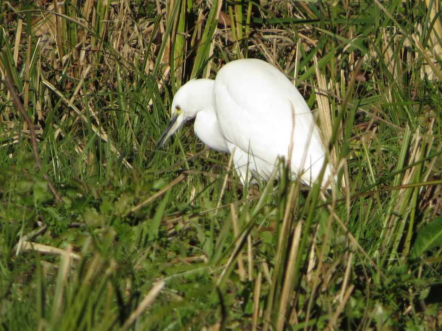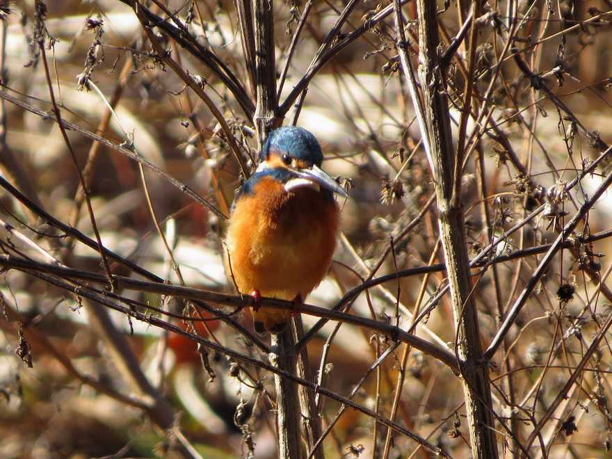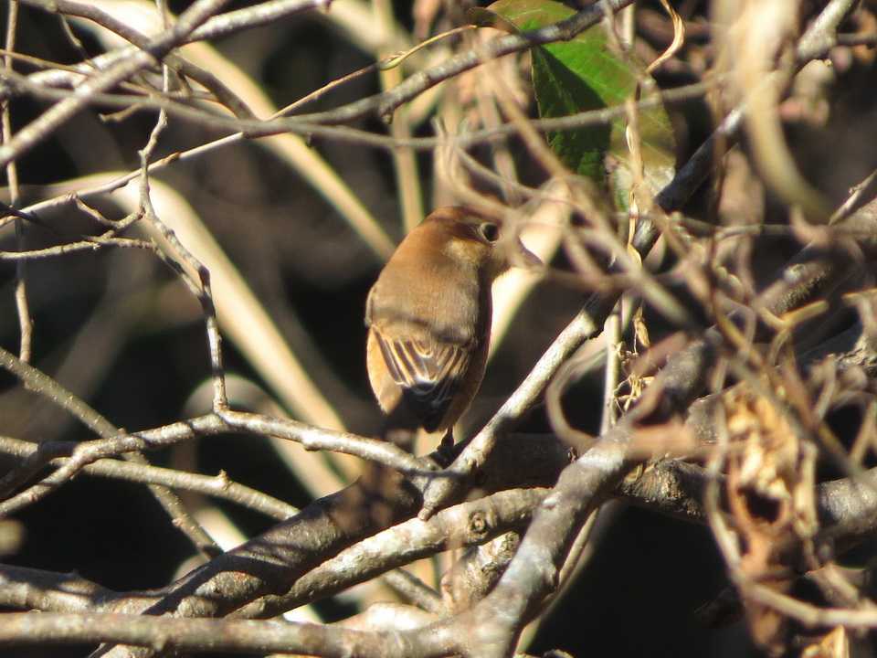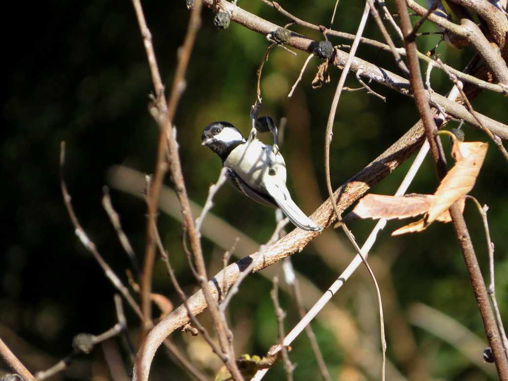市川市内の自然公園を訪ねました。 細長い谷間にそって整備されている遊歩道をスタートすると、池でカワセミ雄と遭遇。 その後、湿地の水路沿いで羽を休めるアオサギ、餌探しに余念のないコサギ、茂みの中にモズ雌、餌を食すシジュウカラを相次いで観察しました。 さらに進むと水路沿いの茂みでヒッヒッとジョウビタキ似の地鳴きが聞こえました。 しかし、ジョウビタキのカッカッに該当する声がギョギョと濁っていました。 一瞬でしたが、上面の褐色部分と尾に青い部分があり雄第一回冬羽ではないかと思われました。 その後、波状を描き枝に降り立ち、直立の姿勢をとったずんぐりとした7羽の小鳥を発見。 確認するとアトリ科のシメでした。頭部の褐色、目先から喉が黒く、風切が濃紺で基部に白い部分、先端が角張っている独特のスタイルでした。 なお、前回、姿を観察できたアトリ科ウソは、今日は林の中から鳴き声のみでした。 (写真)2025年12月15日撮影 (10枚目のシメは初列風切の部分を参考にと2020年1月12日松戸市で撮影のもの)
