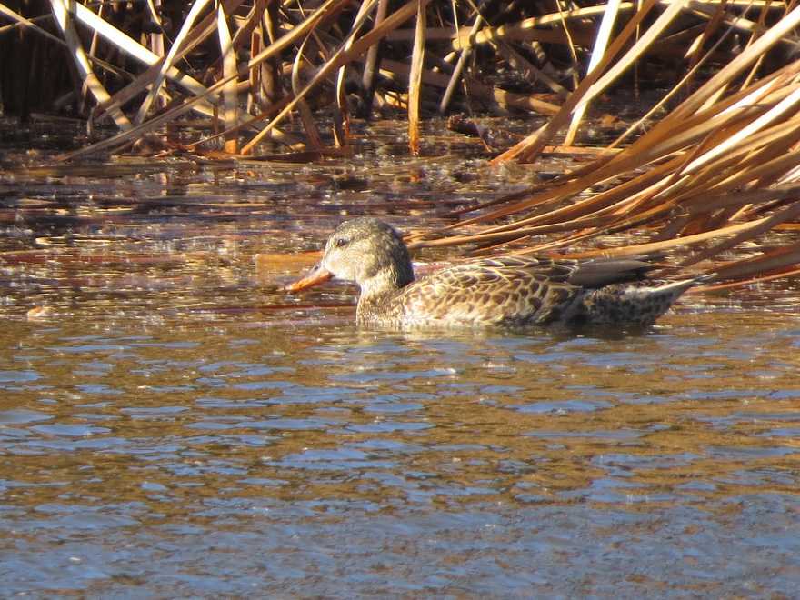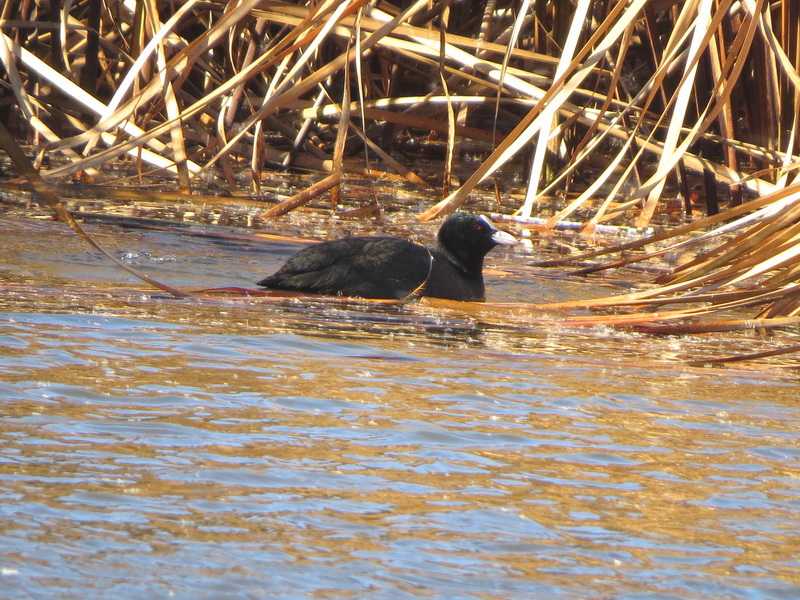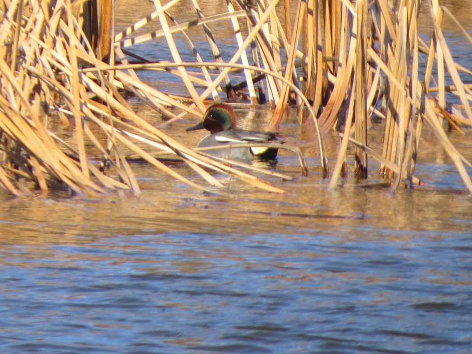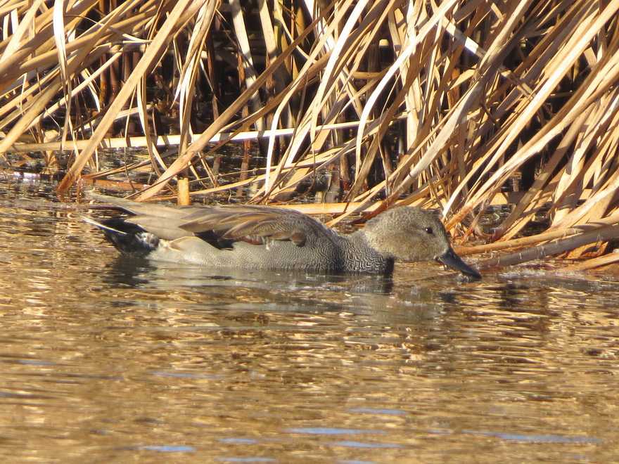 昨年11月29日にオオハクチョウ亜成鳥の姿があり、その後も来園者により断続的にオオハクチョウの姿が観察されています。今日は成鳥3羽、幼鳥1羽が羽を休めていました。 2022年1月に6羽、2010年12月に4羽観察して以来複数が羽を休めているのは久しぶりです。 北西の4m前後の風が吹き抜けていたので、水鳥はオカヨシガモ、コガモ、カイツブリ、オオバンが葦原の縁に姿を現すのみで、アオサギが小島の端の風を避けられる場所で眠りこんでいる姿、ハクセキレイが地面で餌探しをしていた姿を観察したのみでした。 なお、オカヨシガモの1羽は脇に丸みのある羽が残っている個体で、エクリプスからの移行中の個体と思われました。 (写真)2026年1月6日撮影