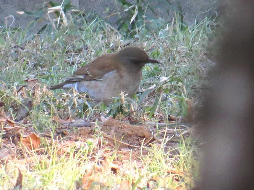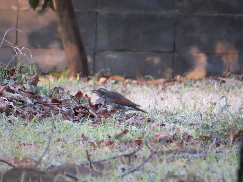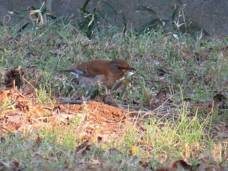 オフィス近くの小さな谷津田の池を午後散策しました。 小さな池の水面は大半が凍結しているのでカワセミが餌を採れず、姿を現しませんでした。 しかし、台地の梅主体の畑では、地上で採餌する鳥たちの厳しい冬を生き抜く姿を観察。 (地上で採餌する冬鳥が地中に耳を傾ける仕草) シロハラが落ち葉をめくりて餌を探している光景を目撃しました。 地面に耳を傾けて地中のミミズの動く音を聞いているような仕草を複数見かけました。 片方の目で餌を凝視し、片方の目で上空の敵を見張っているようでした。 ツグミは、小走りして立ち止まり、餌を見つけては拾って食べると言われていますが、今日見かけたツグミは落ち葉の積み重なっいる場所で獲物がいるポイントを一点を凝視しパクッと獲物を捕食。小さなに丸い虫のようでした。 この他、畑地で地面をとことこ歩いて餌を探していたハクセキレイが、静止しやはり地中の音に耳を傾ける仕草をしていました。空中で昆虫類を捕食すると思っていたので意外な発見でした。 (トラツグミの採餌) 同じ谷津田では2月から3月にかけてトラツグミを見かけます。 地面を移動していたと思うと立ち止まり、地面に顔を傾けて静止する姿を見かけます。 手当たり次第に落ち葉をめくり腐葉土をほじくったりしていると、ミミズの捕獲が不確実になるのでしょうか、土の中に耳を傾けてその位置をねらい捕獲しているようです。 そのようなことがシロハラやツグミにもあるのか、丁寧に観察する必要があります。 (そのほか) 谷津田の水路でハシブトガラスが低い気温下でも豪快に水浴び。 撮影していたら、全身にバリアがかかっているような光景を記録できました。 畑地でムクドリ成鳥が餌を探して移動しやはり静止する姿を見かけました。 この他、若鳥は電柱の上に止まり周囲を見渡す仕草を見せていました。 どんな採餌行動をするのかまでは観察できず、次回の宿題となりました。 (写真)2026年1月12日撮影