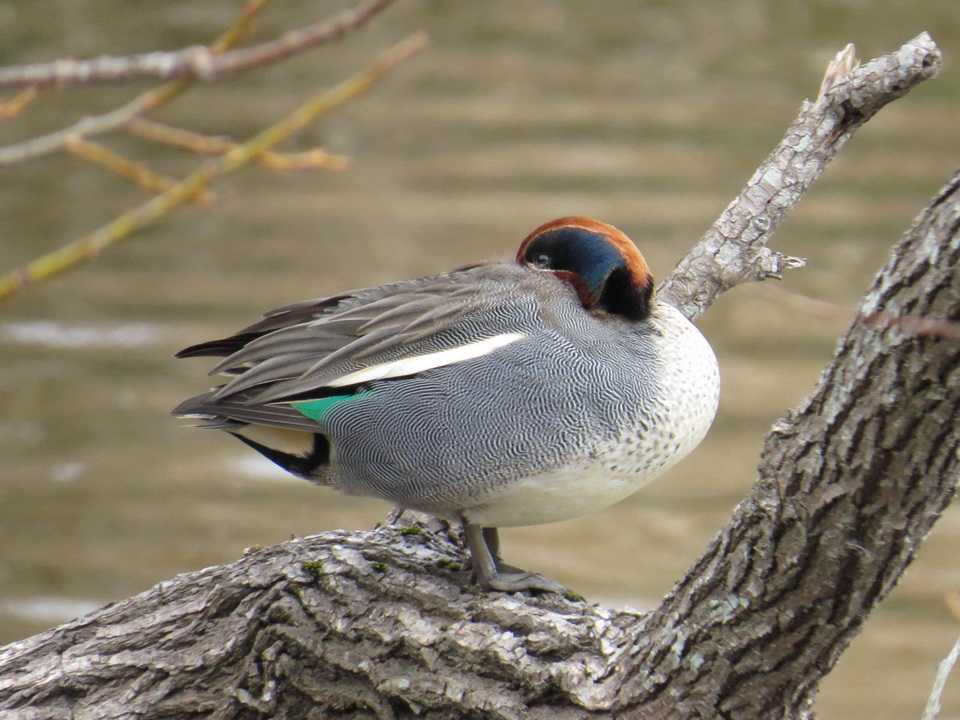 朝から曇りで気温10度で北よりの風3m前後で、体感は真冬並みでした。 冷たい風を避けて鳥との出会いを楽しめる成田市坂田ヶ池総合公園を訪ねました。 (ジョウビタキの地鳴き、くぜりを堪能) 池の岸辺、林縁で複数にジョウビタキ雌雄の姿を見つけました。 雄は、地鳴きの「ヒッヒッ、カッカッ」という短い声、囀り似のつぶやくようなくぜりの「チーチーチルル」の2パターンの声を披露していました。 くぜりは、喉をならすような感じの小さな声で、耳を澄ましていないと音の羅列でした。 (くぜりは若鳥が囀りを学習する過程での不完全な鳴き声と繁殖期前に成鳥が出すこともあります) (河津桜の花蜜を吸う、シジュウカラ、メジロ、ヒヨドリ) 開花して間もない河津桜の花蜜を吸いにシジュウカラ、メジロ、ヒヨドリが次々に飛来する姿を目撃しました。大きな一重の花びら、花の色が濃く、早く咲いて長く鑑賞できるのでファンの多い桜です。 (カモの羽衣が春仕様に変化) 池には、ハシビロガモ、ヒドリガモ、カルガモ、マガモ、コガモが羽を休めていました。 カモのいろいろな羽衣を堪能できるのがこのフィールドのおすすめです。 写真2枚目は雌非繁殖羽が繁殖羽に移行中の個体です。三列風切に黒褐色地に橙褐色の斑が出ていない点は非繁殖羽の特徴ですが、脇から下面が明るい色合いに変化しています。 写真3枚目と4枚目と比べると違いがおわかりいただけると思います。 なお、写真3枚目、4枚目は雌非繁殖羽で、胸から腹にかけての斑が大きめです。 写真5枚目、6枚目はコガモです。5枚目は、コガモ雌非繁殖羽です。 生殖羽では三列風切に橙褐色の斑がでますが、写真の個体では出ていません。 また、全体的に色味が乏しく、生殖羽のような橙褐色の強さはありません。 (ふっくらした体形のオオバン) 坂田ヶ池のオオバンは、手賀沼で見かける個体と比べてふっくらした印象を受けます。 オオバンの餌である陸上植物の植体や種子、沈水植物・抽水植物などに恵まれていることが影響しているのではないかと思われます。 (写真) 2026年2月26日撮影