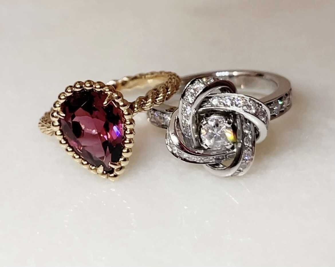 わーいわーい! あの時後悔したセルパンボエム やっと私のとこにもきたー!⸜(*ˊᗜˋ*)⸝ 夫ありがとう◎ 可愛い!素敵! はじめピンククォーツが気になってたんだけど 試着してみたら可愛いけどあまりピンク味を感じなくて 肌なじみがよすぎるというか ロードライトガーネットは色が濃いから 派手かなーって思いながら試着したらめちゃくちゃ素敵で 想像以上にしっくりくるし上品✨ 夫にどっちがいいかと聞いてみたら 夫もロードライトガーネットの方が良いと すぐ決定✨ 担当の方もとても良い方で楽しく買い物ができた 幸せな時間だったな リングはキラキラで、角度によって色んな色がでるのが素敵で ずっと見てられるよー ピヴォワンヌさまと一緒に