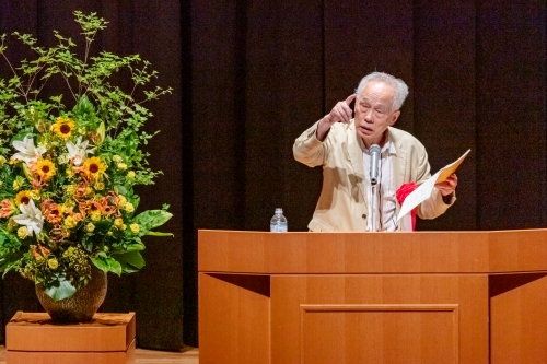 前回もお知らせしまししたが、佐高先生が話された概略のまた概略になりますのでそのつもりでお読みください。 ▼ 佐高信氏直筆のレジュメ ![]() ![]() Ⅲ 「明治維新」とは?王政復古 小畑実と言う人の唄に「勘太郎月夜唄」と言うのがある。その二番か三番かだったかに、「菊は栄える、葵は枯れる」と言う文句がある。菊は栄えて葵は枯れるっていう文句を唄の中に盛り込んだ。菊は皇室、天皇の紋。葵は徳川の紋を言っている。明治維新と言うのは王政復古で、つまり、天皇の世に戻すと言うことなんだから、明治維新と言うものが本当の意味での改革だたのか、清河八郎と言う人物は何を望んでいたのか、此処が一番大事な点だと思う。 ![]() Ⅳ 「不耕貪食の徒(ふこうどんじきのと)」 年貢半減令と相楽総三 レジュメの4番目に「不耕貪食の徒」と書いた。安藤昌益と言う秋田出身の幕末の思想家で、この安藤昌益が「不耕貪食の徒」と言う言葉を残している。「不耕貪食の徒」と言うのは、”耕さず、貪り食う輩”と言うことで、百姓、当時八割を占めていた百姓、農民から見て、武士、あるいは公家のことを言っている。 徳川幕府が長年続いて腐ってきた。その幕府を改革すると言う、しかしそれは、侍の世が続くと言うことであり、徳川から薩摩、長州が取って代わるだけのことだった。天皇を敬う尊皇の世にしての倒幕と言うことは、その時に本当に百姓にとっての改革だったのかどうか、「不耕貪食の徒」と言うものを無くすための改革だったのか、清河八郎はそこをどう考えていたのか、私はそこが一番これから明らかにされなければならないのだと思っている。 その下に年貢半減令と相楽総三と書いた。薩摩、長州のいわゆる官軍と、それに対抗したのが奥羽越列藩同盟で、長岡の河井継之助なんかを含めた奥羽越列藩同盟との対抗の中で、勢力は拮抗していた。 勢力が拮抗していた時に、当時八割を占めていた百姓をどっちの味方につけるのか、と言うことが当時非常に大きな問題だった。それで官軍は新しい世になったら年貢を半分にする「年貢半減令」と言うのを出した。 西郷隆盛は、誠実一途な人でもあり、策謀家でもあった。西郷は、相楽総三や、清河八郎とも近かった、伊牟田と言う人などを使って、年貢半減令を触れ回させた。 相楽総三は、赤報隊を組織し新政府になったら年貢が半分になると信じて触れ回り味方になる百姓達を増やしていった。 しかし、新政府になって年貢を半分にしたらやって行けないことが分かり、あいつらは偽官軍だと言って、相楽総三を捕まえて断罪した。 私は清河八郎もこの相楽総三と同じ運命をたどったのではないかと思っている。つまり、清河八郎の中にはやっぱり百姓、農民への思いは武士以上に強いものがありながら、維新と言うものが、本当に百姓の為のものなのかどうかと悩む前に亡くなってしまった。 西郷隆盛が年貢半減令と言うものを出した時に、清河八郎は真っ先に賛成したに違いない。 明治維新は百姓にとっては裏切られた革命、裏切られた変革だった。その歴史の中で清河八郎と言う人が何を望んだのかを押し出していくことが、大きなポイントではないだろうか。 清河八郎がこう言う手紙を両親に書いている「父上も、母上も、私と言う奇男児(奇妙の奇に男児、男の子)をお産みになされたのです。であるからには、奇なる、奇妙な禍福、災い福をお受けするのも是非なきことだからお諦めください。」 こういう風に、清河八郎が自分で言っている様に、変わった男が何を望んでいたのかと言うことがポイントで、私はやっぱり、年貢半減令と言うものが百姓の味方と言うところに行ったのかどうか、あるいは行く可能性があったのかどうか。こういうところが大きなポイントになって来ると思っている。 ![]() Ⅴ 清河八郎の可能性・大川周明、石原莞爾と比較して 藤沢周平さんがエッセイ集「周平独言」の中で三人の予見者として、石原莞爾、大川周明、そして清河八郎を書いている。 この三人はある種の悲運を背負って亡くなっている訳だが、やっぱり普通の人と比べ真直ぐな道を歩けないところがあると言うか、歩めないと言うか、歩きたくないと言うか、藤沢周平さん自身を含め平らな道を歩きたくないと言うか、只、その三人と同じ故郷だと言うことが、私を含めて皆さんにとっても幸福であるかどうかと言う問題です。(会場:あちこちで笑い) 私は東洋経済と言うところで新田嘉一さんについて書いた。新田さんは農家の跡取りに生まれながら稲作を継ぐのを放棄して畜産に挑んだ。当時それは非常に非常識なことで、しかしそれはあえてその道を歩むと言うか、清河八郎も嫡男として収まっていれば収まる。それを収まらずに出ていく。 石原莞爾は戦後最大の戦争責任者は誰かとアメリカ軍に聞かれた時、トルーマン大統領と答えている。原爆を落としたトルーマンだと。その言葉はある種正しいが、そう言う、全然恐れないで