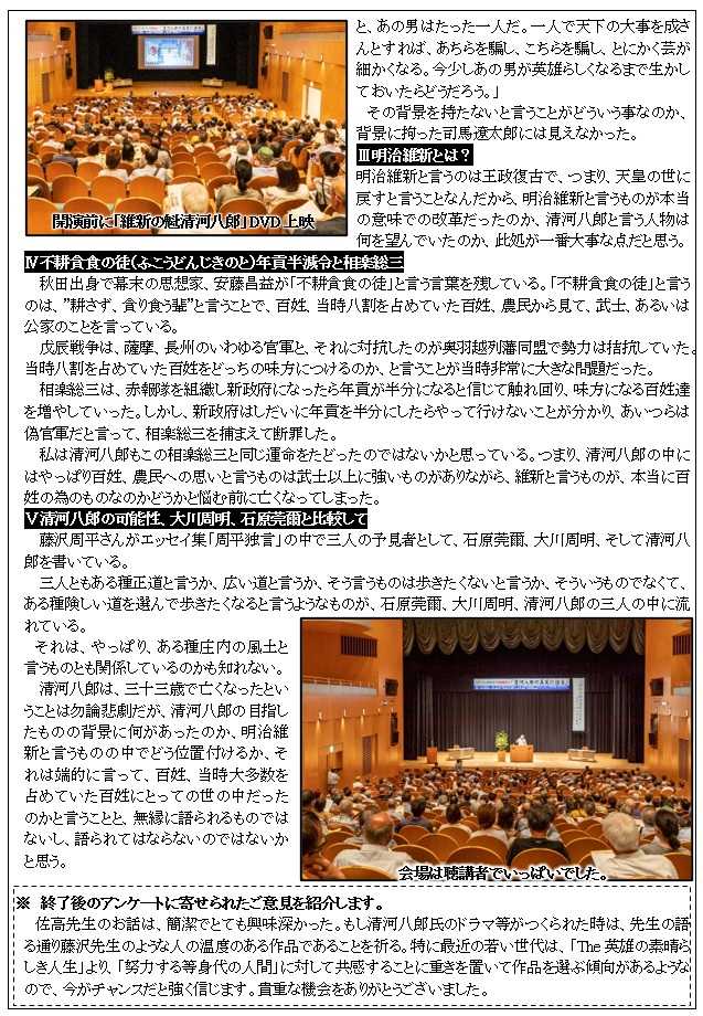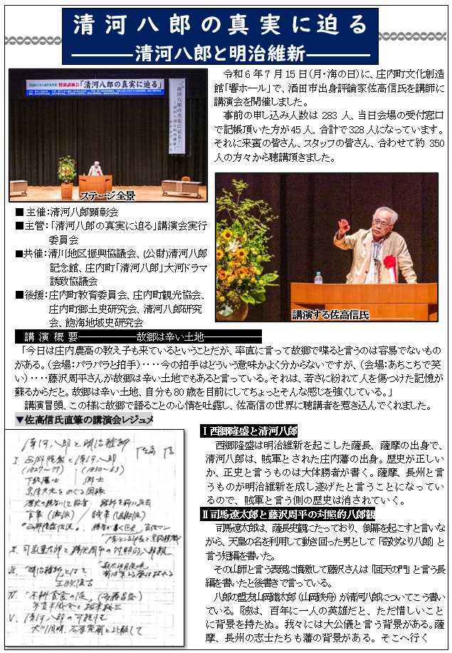 明治維新の魁「清河八郎」顕彰会の活動について紹介しています。