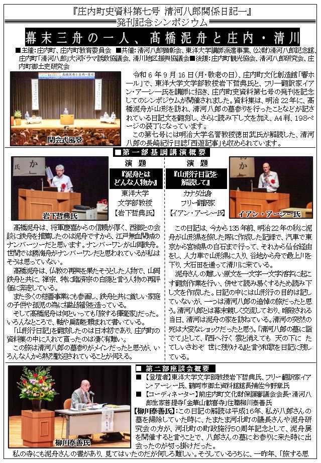 清河八郎顕彰会HP公開 2022年02月24日