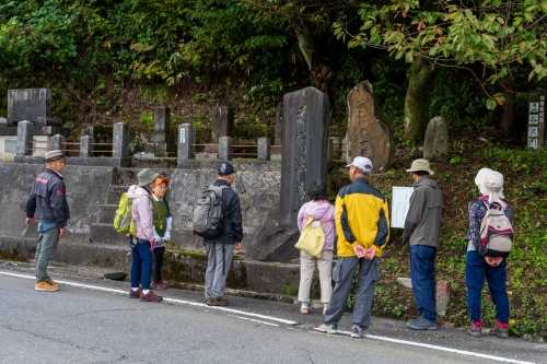 ![]() ▼ 金華山歓喜寺(八郎生家齋藤家菩提寺) 八郎生家齋藤家の墓所があり、八郎本人と妻お連、それに父(豪寿)、母(亀代)、それに二人の弟(熊次郎、熊三郎)の墓碑にお参りした。 ![]() ![]() ▼時間の関係で御諸皇子神社までは上らず、歓喜時の前で隋神門の仁王像や源義経が一夜の宿にしたことを説明。併せて北館大堰が開削された歴史も説明しました。 ![]() ▼北館大堰沿いに歩いて最後の案内箇所に向かいます。 ![]() ▼ 官軍墓碑 『1868(慶応4)年4月、戊辰戦争清川口の戦いで亡くなった長州藩士2名の墓で、清川の人々は敵と言えども温かく弔っている。同郷である元首相岸信介氏が酒田を訪れた際にそのことを聞き及び、「赤心薫萬古(せきしんくんばんこ)」(地元の人々より手厚く葬ってもらい感謝に堪えない。二人の忠誠心は永久に忘れられない)の言葉を残している。』 ![]() 最後に参加者の感想を紹介します。 お気に入りの記事を「いいね!」で応援しよう