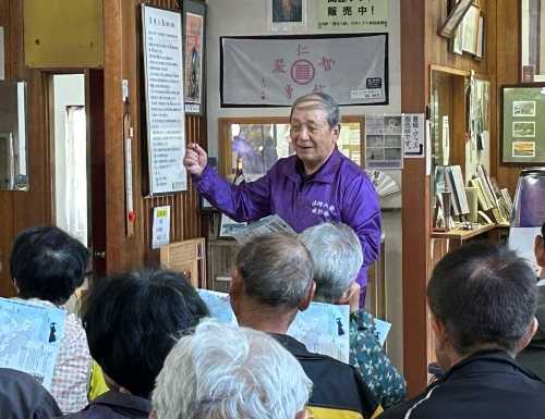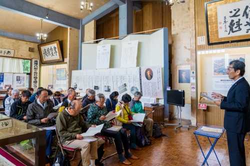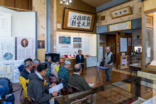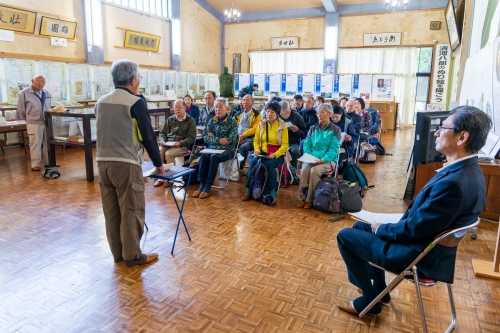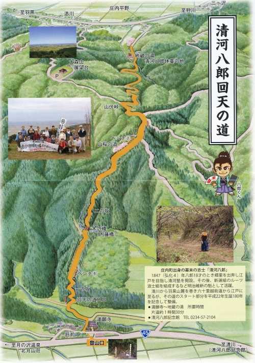 参加者は21名でその内リピータの方は16名、この事業を待ち望んでおられる方が大勢いると実感していますし、遠くは秋田県小坂町からも参加して頂きました。 山形県では熊出没警報が延長されている中、主催者として最大の注意を払っての実施でした。熊鈴の携行は勿論、スタッフ全員がホイッスルを所持、さらに参加者全員に「音だけクラッカー」の配布、そして「クマよけスプレー」と「クマよけピストル(音だけピストル)」1丁を準備して実施しました。 ![]() ▼ 開会式で挨拶する齋藤満清河八郎顕彰会会長 ![]() ※ 挨拶概要 「『回天の道』にご参加いただきありがとうございます。」とお礼を述べ、顕彰会は清河八郎公の偉業を顕彰し広く伝えていくために活動している。 生誕200年にあたる2030年を目途に、NHKの大河ドラマ化を目指している。皆さんからも広めていただきたいし、今日は一日楽しんでもらいたい。 ▼ 齋藤秀樹庄内町議会副議長による祝辞 ![]() ![]() ※祝辞概要 この事業は大変歴史のある事業で今年で18回になっている。清河八郎の名前を広く知ってもらうために大いに貢献している事業だ。 今日は、清河八郎大河ドラマ誘致についてと題した、庄内町議会総務文教厚生常任委員会の調査報告書を持ってきた。報告書は14ページからなっており、人物像に始まり、大河ドラマ誘致協議会や、記念館の運営、関連事業としてこの事業にも言及している。 大河ドラマ化についてはNHKから地元の気運醸成を言われているが、そう簡単ではない。皆さんの力も是非お借りしたい。 ▼今年の特別企画展「京都遊学と長崎への旅日記」を解説する廣田幸記清川八郎記念館館長 ![]() ![]() ※解説概要 八郎数え21歳の年に父から許可を得て京都遊学に向かった。京都で遵古塾堂(じゅんこどう)に入塾したが、八郎の知識を超えるものではなかったため、外国の情報が多く入る九州へとさらに旅立った。九州に32日間滞在し、船からオランダ商館を眺めたり、許可ある者でなければ出入りできないオランダ商館に友を介して変装して中に入り見学している。 その時の日記「西遊記事」で「万巻(多くの書物)の書を読んで得た知識を以って物事を処理すれば、経世済民(世を治め民を救う)の学に役立つことが大きいであろう。これが九州を遊学する所以である。」と記している。 ▼回天の道へ出発する前に記念の集合写真 ![]() ▼ 回天の道トレッキング ![]() ![]() ![]() ![]() ![]() ▼ スギヒラタケ(通称:スギワケ) ![]() ▼ マスタケ(鱒茸) ![]() ▼ シロマイタケ(白舞茸) ![]() ▼ ササクレヒトヨタケ?(現地で即断できる人が居なかったため採取していません。後日gooレンズで検索です。) ![]() ▼ 約4.0kmの回天の道と大森山展望台までの距離約0.7kmを1時間50分位で歩き、再びバスへ乗り込んで昼食会場の月の沢温泉「北月山荘」へ移動です。 ![]() ▼ 月の沢温泉「北月山荘」では、本格的なフレンチを提供している食堂「モン・ヴィペール」での昼食になります。 この日のメニューは、≪前菜:魚介とジャガイモのキッシュ・いでは工房さんのベリーリーフサラダ≫≪メイン:庄内豚ロースのロースト・赤玉ねぎとマディラのソース≫≪デザート:バスク風チーズケーキとバニラアイス≫それにフランスパンがセットになっていました。 ▼月の沢温泉北月山荘「モン・ヴィペール」での昼食風景 ![]() ![]() ▼ 魚介とジャガイモのキッシュ・いでは工房さんのベリーリーフサラダ ![]() ▼ 庄内豚ロースのロースト・赤玉ねぎとマディラのソース ![]() ▼ バスク風チーズケーキとバニラアイス ![]() 食事が終わるとお風呂に入る人、ゆっくり休む人それぞれに過ごしていました。 ▼ 清河八郎座像の説明 『昭和42年に清河神社大鳥居側に建立されたもので、八郎が京都壬生新徳寺で、浪士組234名を前にして尊皇攘夷の大義を説く英姿を現している。』 ![]() ▼御殿林 『御殿林は、1717(享保2)年に荘内藩主酒井家が防風林として3000本の苗木を植えたのが始まりで、「御殿林」という名前は、この林のそばに藩主が参勤交代の際の休憩所である本陣があり、それが「御殿」と呼ばれ、御殿のあるお林であることから「御殿林」と呼ばれている。』 ![]() ▼ 清河八郎生家跡 『酒造業を営んでおり、また立谷沢川で採れる砂金も取り扱っていた。生家は平屋で約1,000坪の敷地に蔵などを含めると約230坪の建物だった。』