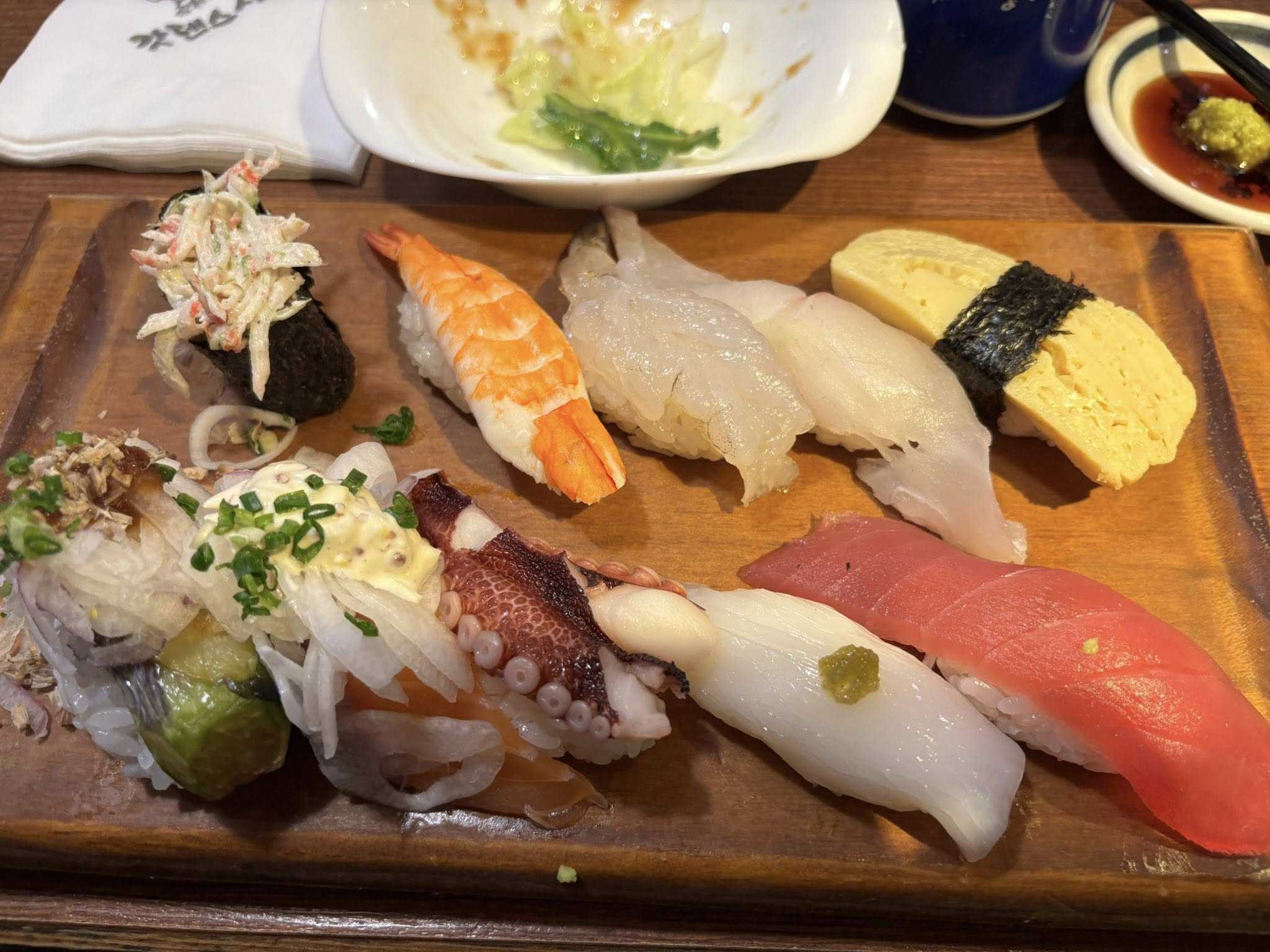 月、火、と外出した! 特に昨日の体感温度はかなり低かった! そして本日はランチ会と弁護士との会食がある! とりあえずお昼から遠くからお二人が来た! 希望を聞くとやはり寿司が良いという! がってん寿司しかないですね! 先に幹事さんが席取りに行ってくれたが先週もそうですが客のペースが遅くなったのか寒いせいなのかすぐ座れた! 食べ方の知らない人にランチタイムですのでサービスメニューをお知らせして! 注文を! 料金は1万5千前後! 回っている皿をとると一枚で8千Wくらいのものを取りたくなる! ランチセットを頼むのが正解ですね! 他のお客さんは回る寿司を取っていますがその必要はないでしょう!(トロなど食べたいが一皿8000Wです) 食後のコーヒータイムは平和茶房の下のスタバでOKでした! 広い席が空いていた! 奥の死角にありました! ゆっくり会話が出来ました!