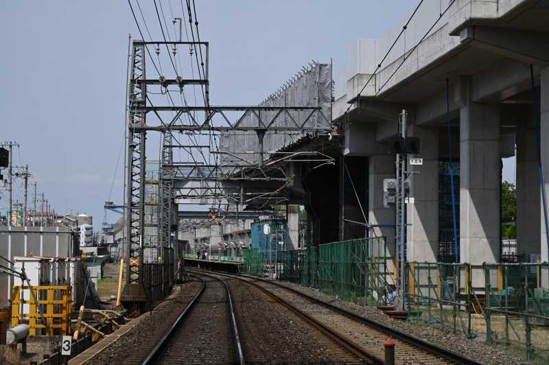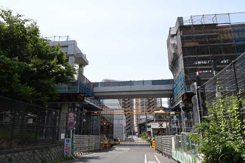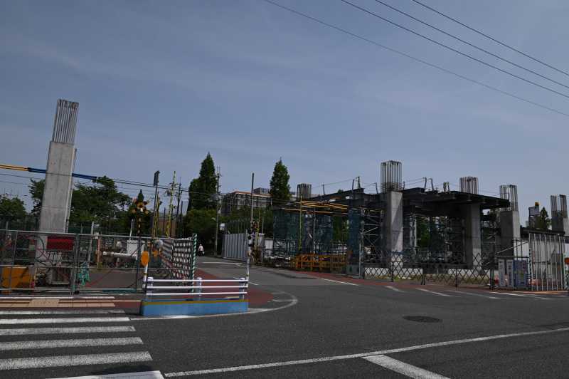 ![]() こんにちは。こんばんは。 崇禅寺駅の5月の様子をレポートします。 1枚目は盛土工事の終点部分です。 盛土終点部の壁ができあがりました。引き続き横の壁面を施工中で鉄筋が並んでいます。 ![]() 2枚目は飛鳥橋踏切です。 壁面を含めた上部の工事をしているようです。 ![]() 3枚目は飛鳥橋踏切から崇禅寺駅方向です。 高架橋が少し線路にかかる位置まで施工されています。上や横の様子はちょっとわかりません。 次回からこの周辺もチェックしていきます。 ![]() 4枚目は大宮橋踏切です。 右側(崇禅寺駅・梅田方向)にステージが出現しました。おいおい上部を造っていく模様です。 左側はこの周辺で大きな変化はありません。 ![]() 5枚目はハラカイ踏切です。 左梅田側の高架橋が出現しました。足場が外された状態です。 右淡路側は柱を施工中で鉄筋が確認できます。 今回は以上です。次回は7月にレポートする予定です。 お気に入りの記事を「いいね!」で応援しよう