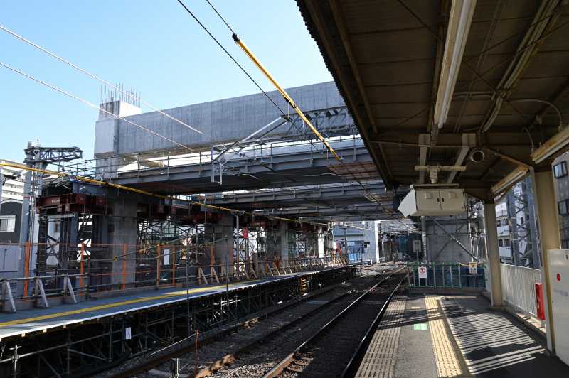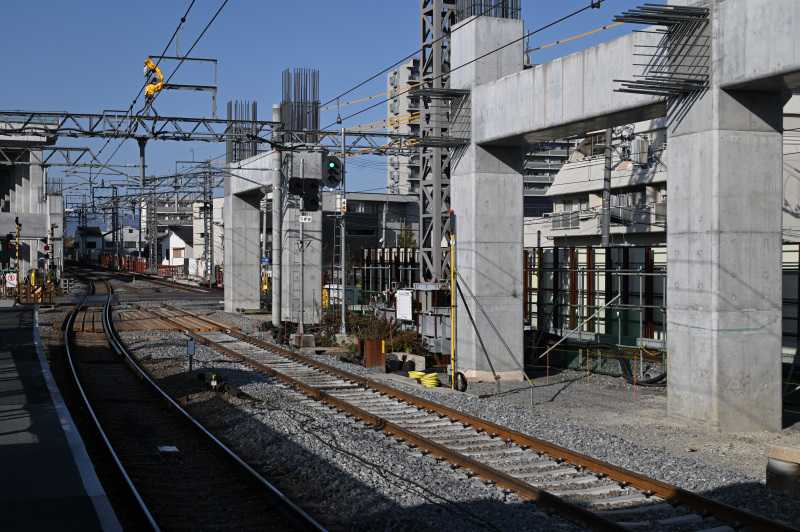 ![]() こんにちは。こんばんは。 下新庄駅の1月の様子をレポートします。 1枚目は五田名北踏切から見た下新庄駅です。 高架橋部は変化ないのですが、仮線部分に架線が架っています。 あわせて架線を架けている金具も変わっています。 ![]() 2枚目は旧淡路行ホーム淡路側です。 高架橋の仮設足場などが撤去されました。架線が掛けられているのもわかります。 ホーム上は大きく変わっていません。点字ブロックが途中までですが、スペースの都合だと 思うのでギリギリで施工すると思います。 ![]() 3枚目は旧淡路行ホームの屋根のある部分です。 ホームがアスファルトになり点字ブロックも完成しています。 あと境界のフェンスも撤去されました。 ![]() 4枚目は北千里行ホームから下新庄踏切方向です。 線路が完成し架線も架けられています。踏切板部分がまだなのでそれを施工して線路切り替え すると思います。 ![]() 5枚目は仮井戸口橋梁の様子です。 桁がすべて架りました。クレーンも撤去されています。 クレーン台が北千里側に残っていますが来月には撤去されているでしょう。 今月は以上です。線路切替が近づいているのでHPも注意してチェックしていきます。 来月も引き続きレポートします。 お気に入りの記事を「いいね!」で応援しよう